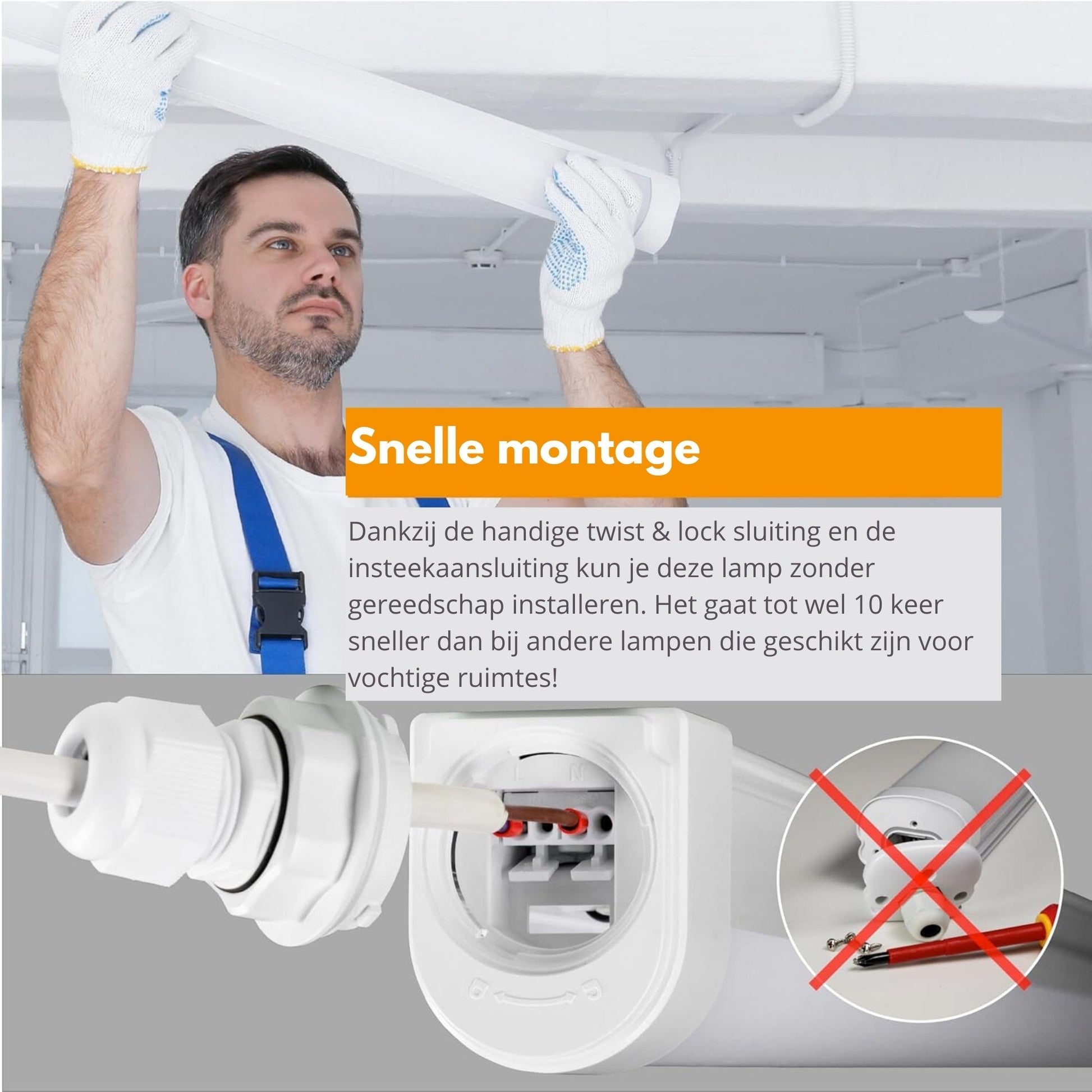 - Koppelbaar tot 10 lampen: Deze LED TL lamp is speciaal ontworpen voor grotere ruimtes. Je kunt tot wel 10 lampen aan elkaar koppelen met de geïntegreerde doorbedrade functie, zodat je gemakkelijk een groot oppervlak kunt verlichten zonder aparte bedrading