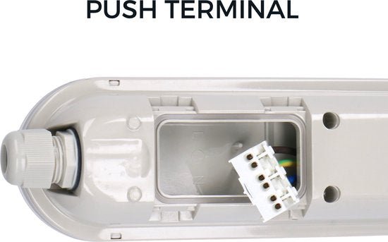 Dankzij de eenvoudige drukklemmen is deze LED TL armatuur snel en gemakkelijk te monteren. Bovendien kun je meerdere armaturen aan elkaar koppelen om grote ruimtes efficiënt te verlichten. Of je nu één of meerdere lampen nodig hebt, je kunt ze eenvoudig samen bedienen, wat perfect is voor grotere projecten of werkruimtes.