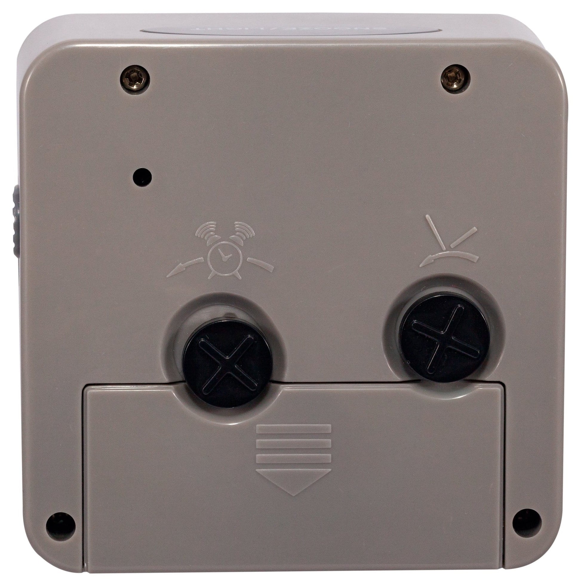 The nXt "Nathan" is a square alarm clock (7.3 x 7.3 x 3.3 cm). When the alarm goes off you hear a beep signal which is getting faster. The alarm clock has a snooze function and a small light. You turn on the light by pressing the snooze/light button. With the the silent movement this alarm clock wakes you up, not keeps you up! This clock runs on 1x AA battery (not included).