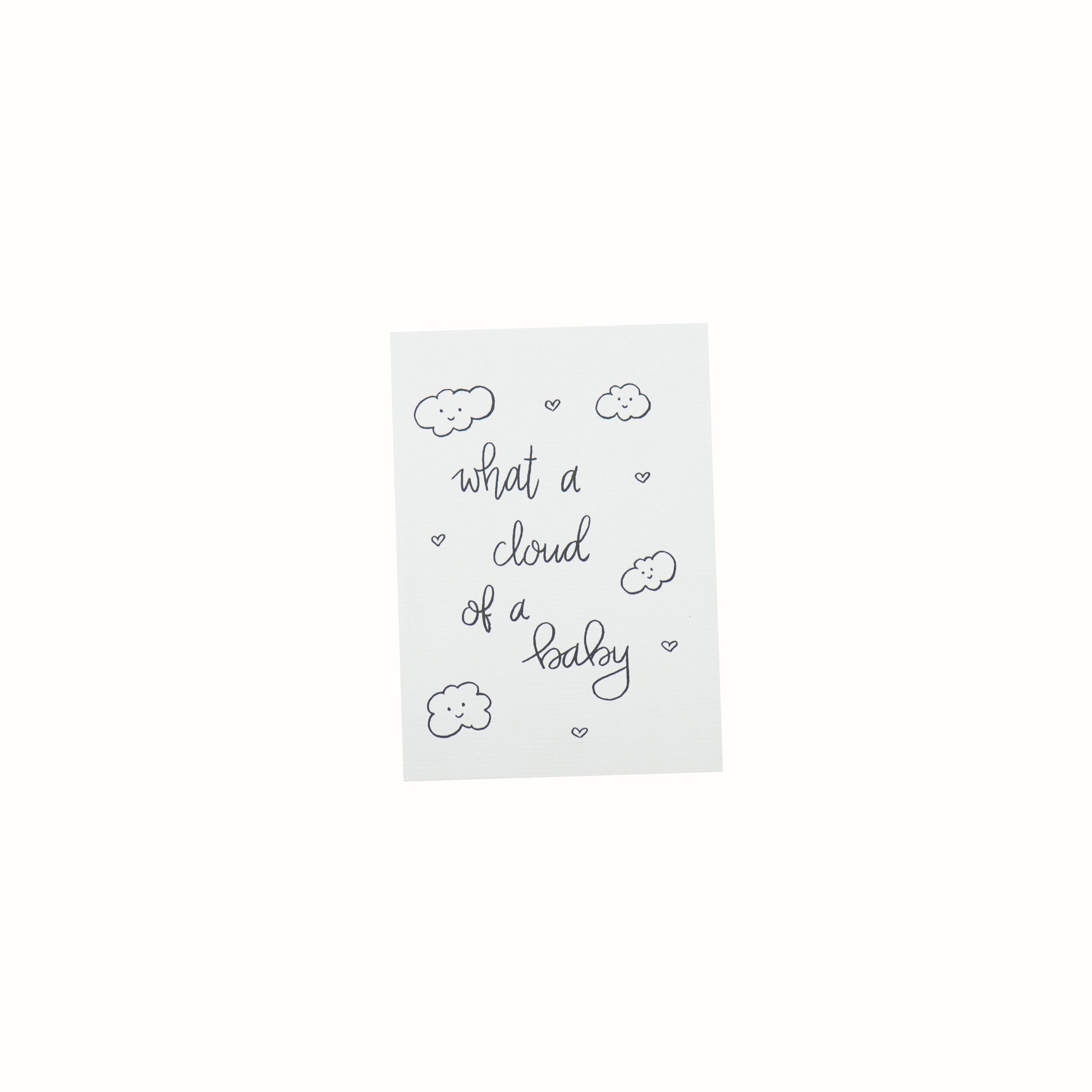 STATIONERY ROCKS - Wij houden van quotes, het is gewoon kunst. Ben je op zoek naar een toffe of stoere quote, een mooie afbeelding of een grappige tekst? Dan vind je die sowieso in de Housevitamin collectie van zwart wit post kaarten. Deze kaart is leuk om naar een pasgeboren baby en de ouders daarvan te sturen: What a cloud of a baby is het typische Nederlandse gezegde 'Wat een wolk van een baby' op z'n Engels: met een knipoog dus ;-)