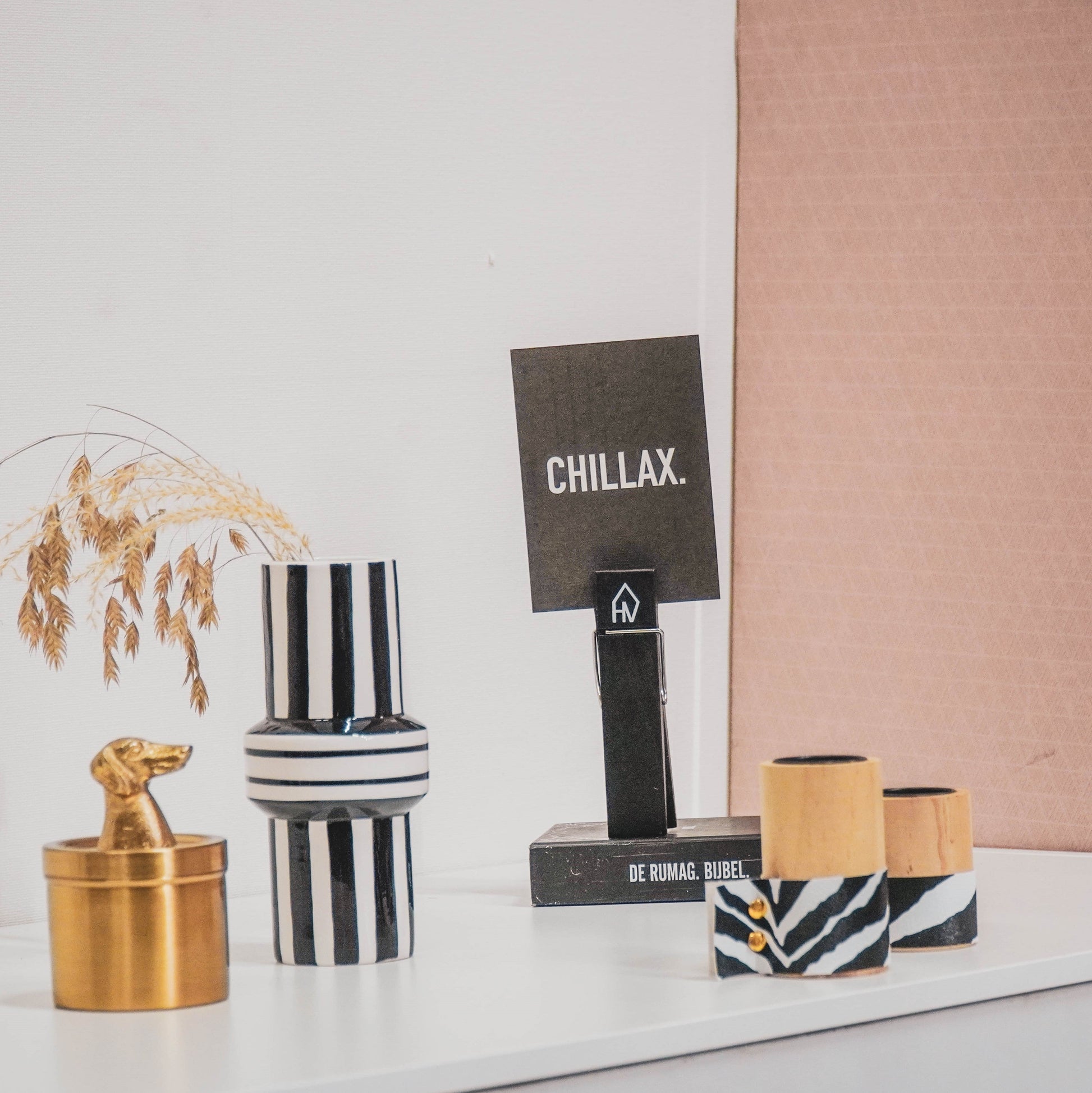 CHILLAX - Wij houden van quotes, het is gewoon kunst. Ben je op zoek naar een toffe of stoere quote, een mooie afbeelding of een grappige tekst? Dan vind je die sowieso in de Housevitamin collectie van zwart wit post kaarten. Deze kaarten met de quote 'Chillax, betekent chillen en relaxen. Dit soort quote kaarten zijn de finishing touch voor jouw interieur en de leukste post die je naar iemand kan sturen.