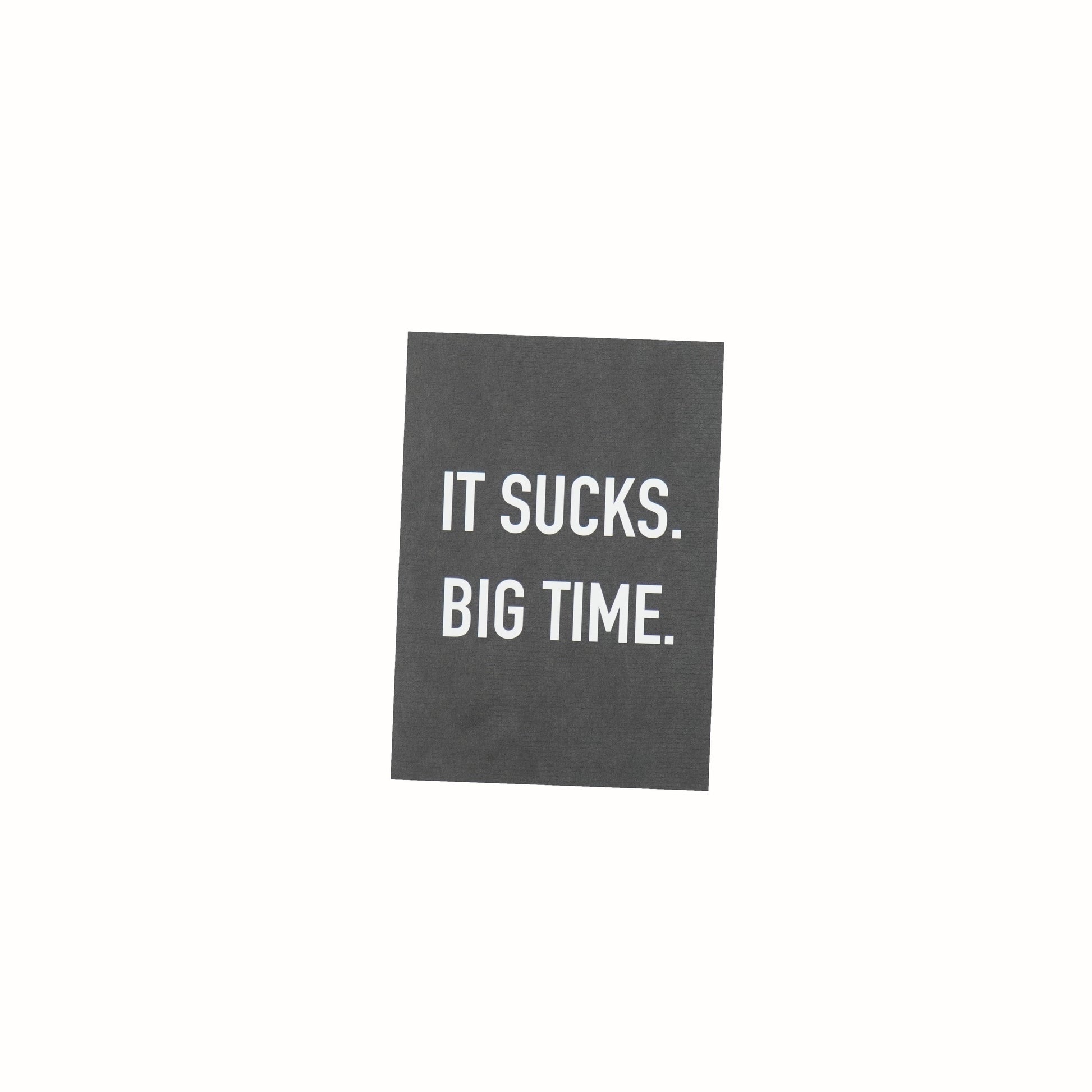 IT SUCKS BIG TIME - Wij houden van quotes, het is gewoon kunst. Ben je op zoek naar een toffe of stoere quote, een mooie afbeelding of een grappige tekst? Dan vind je die sowieso in de Housevitamin collectie van zwart wit post kaarten. Deze kaarten met grappige quote 'It sucks big time' zijn de finishing touch voor jouw interieur en leuk om naar iemand te sturen.