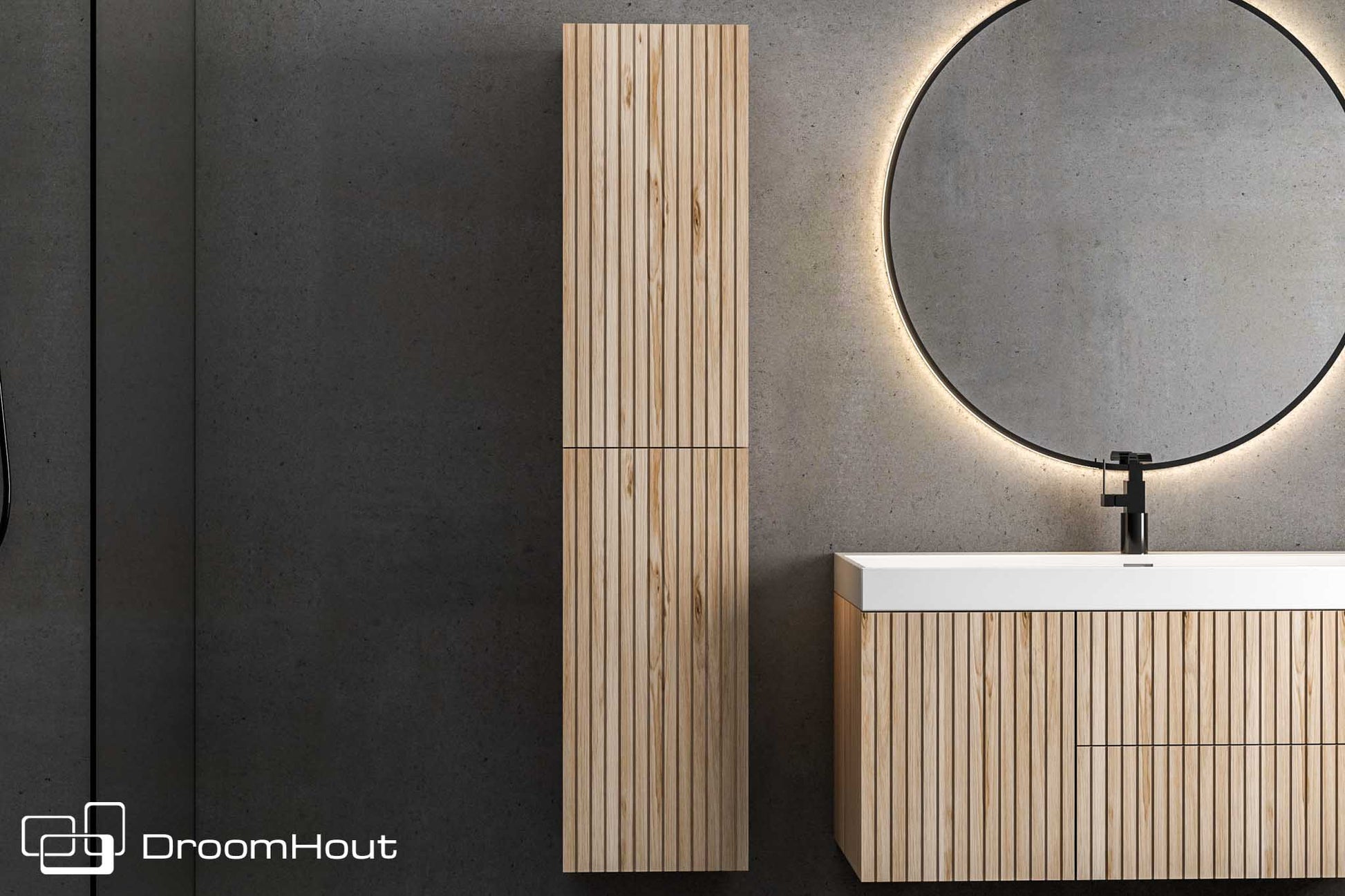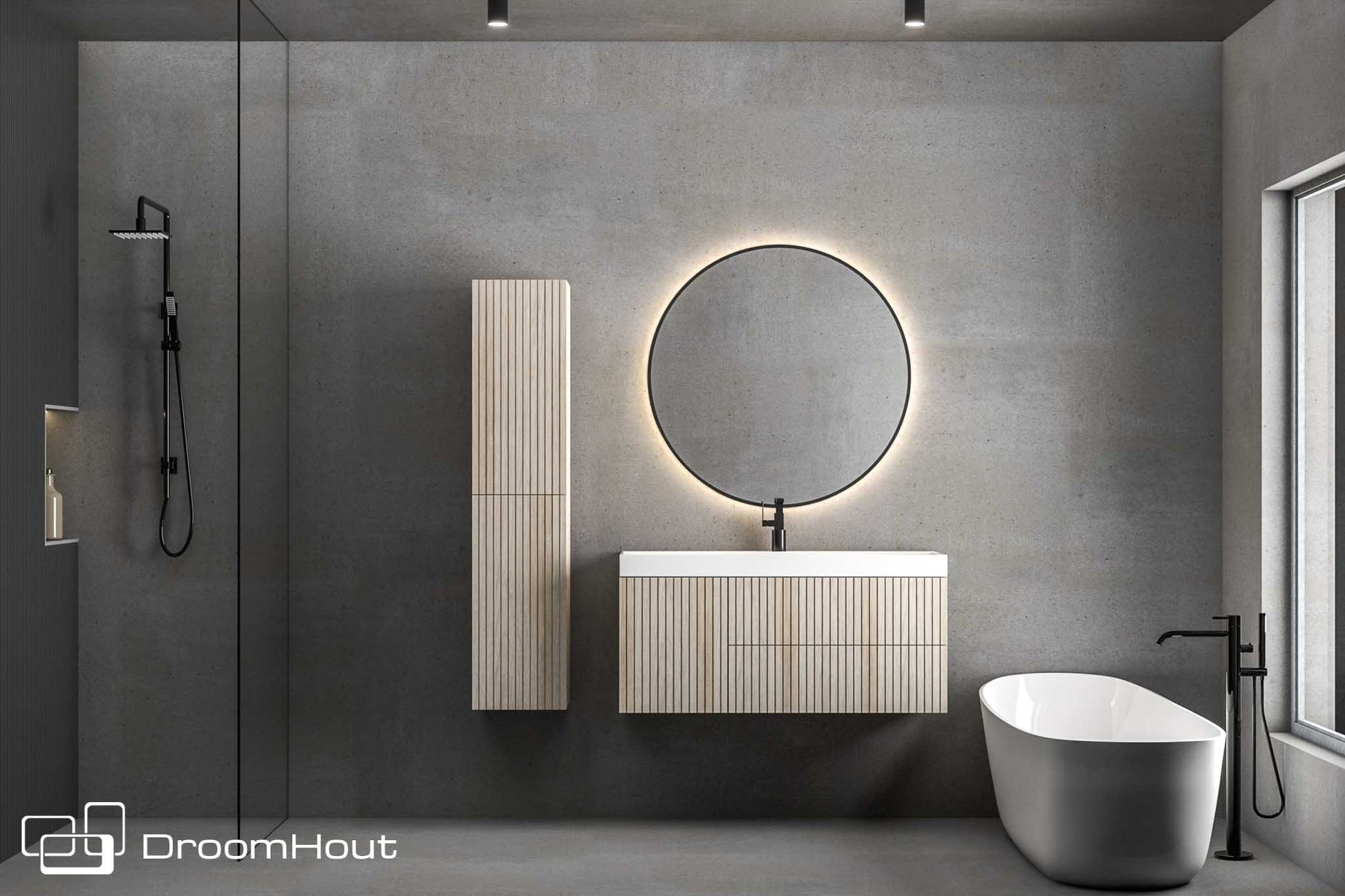Naast onze eigen houtfabriek in Utrecht vind je de DroomHout design studio. Een lekkere creatieve plek waar je niet alleen een goede Utrechtse koffie drinkt maar ook welkom bent om alle badkamermeubels eens in het echt te zien. De meeste modellen hangen er wel en je kan ook gelijk je waskommen en wastafelkranen uitzoeken. Of wat te denken van sfeervolle verlichting in je badkamer? In onze showroom helpen we je graag om al je vragen over houten badkamermeubels te beantwoorden zodat ook jij straks kan genieten van je droombadkamer.