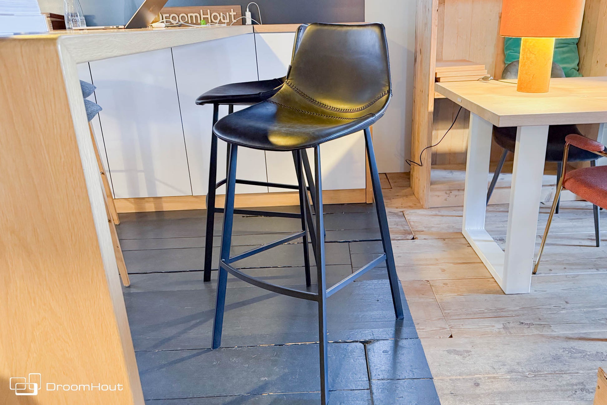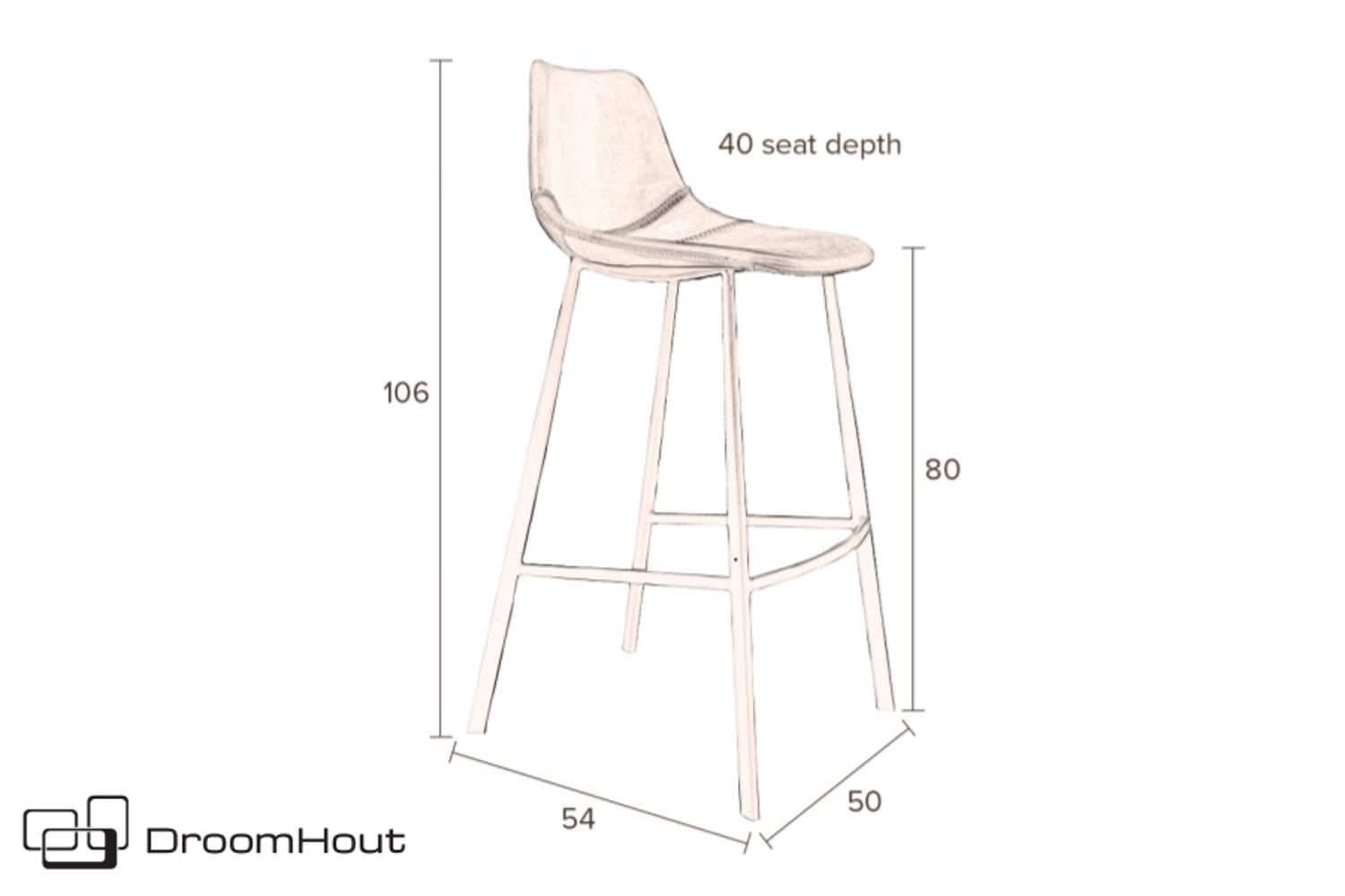 De Franky barkruk heeft een zitting gemaakt van Vintage PU leer en heeft een onderstel van zwart gepoedercoat staal met beschermdoppen. Deze gave kruk van Dutchbone is verkrijgbaar in het zwart en vintage bruin. De afmetingen van de stoel zijn 106 x 50 x 54 cm (h x b x d). De zithoogte is 80 cm en de zitdiepte is 40 cm. De barkrukken is te bestellen in een set van 2 stuks.