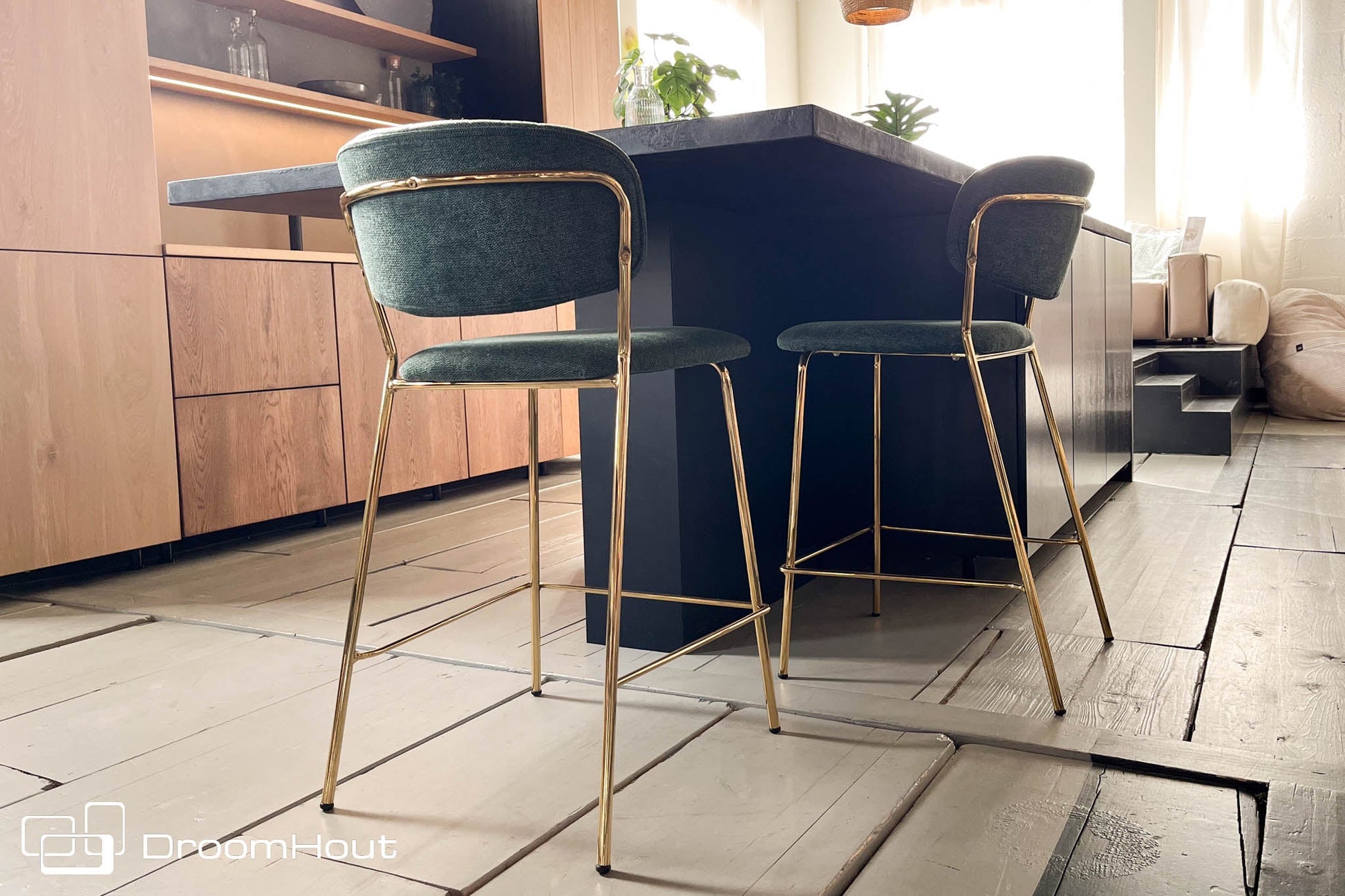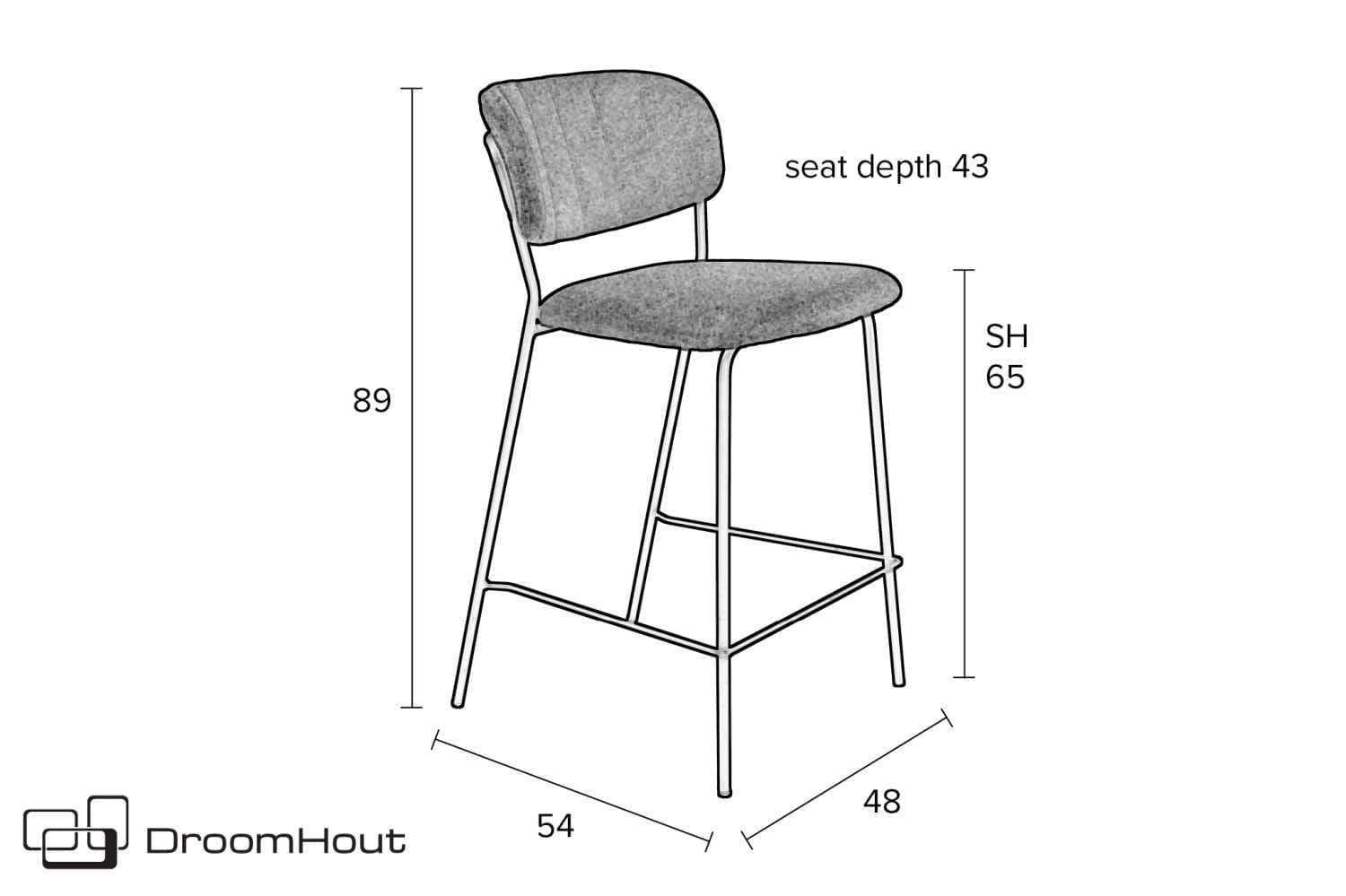 De counterstoel Jolien hoort aan het kookeiland van je keuken. Het is een lage barkruk met een zithoogte van 65 cm. Ideaal voor aan een kookeiland van ca. 90 cm hoog. De zitdiepte van de Jolien lage barkruk is 43 cm en de voetsteun zit op 20,5 cm. De totale afmeting van deze counter stool is 48 x 54 x 89 cm (BxDxH).