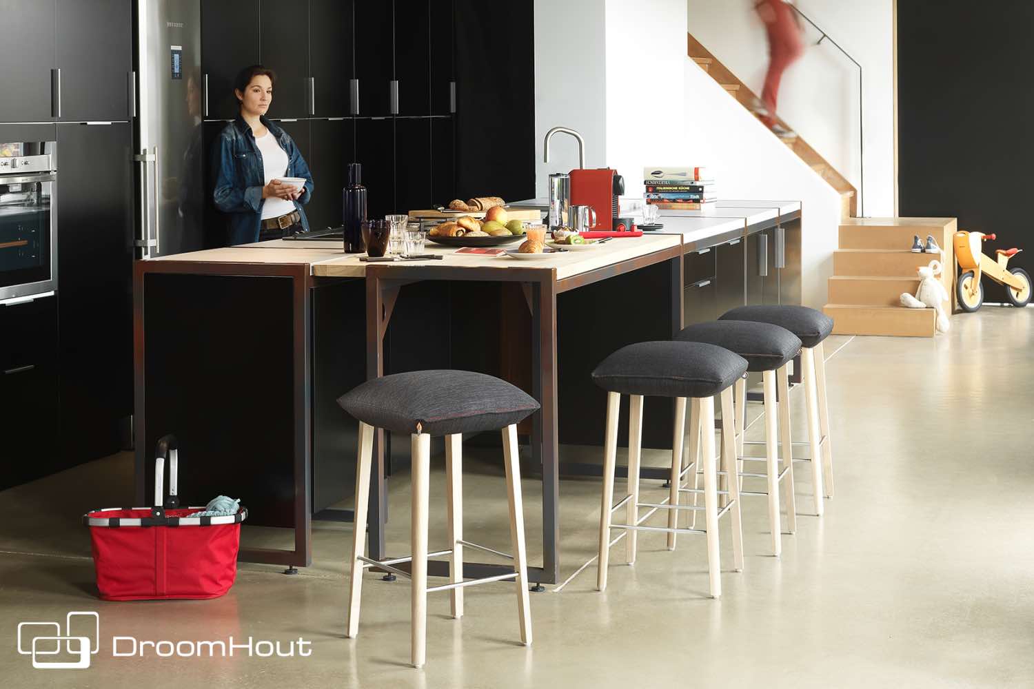 De Soft stoelen van Mobitec zijn bekleed met de HipHop stof. Je hebt keuze uit maar liefst toffe 12 kleuren. Maar wil je een andere bekleding? Dat is zeker mogelijk. Mobitec heeft een zeer uitgebreide collectie stoffen, kunst leer en leer waar mee je je Soft barkruk kan bekleden. De poten zijn standaard in massief beuken uitgevoerd. Maar ook massief eiken of noten is mogelijk. En kan zijn ze ook nog alle 3 in diverse kleuren te leveren. De barkruk heeft een hoogte van 85 cm wat hem geschikt maakt voor bij een bartafel van ca. 110 cm hoog. Maar ook aan de andere toepassingen is gedacht. Zoek je een kruk voor aan het kookeiland. Dan is de Soft kruk van 62 cm hoog jou maat. De meeste kookeilanden hebben een hoogte van ca. 90 cm. Daar past deze Soft kruk van 62 cm ideaal bij. En om de collectie krukken helemaal compleet te maken is er ook een lage Soft kruk van 47 cm hoog. Leuk tussen je Soft stoelen. Of als voetenbankje voor je Soft stoel!