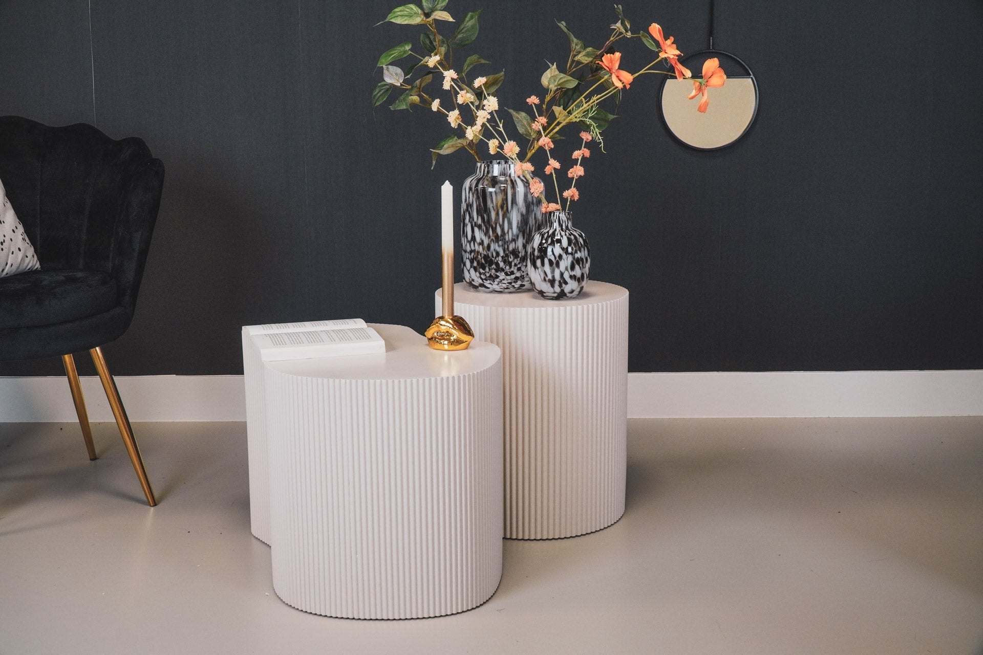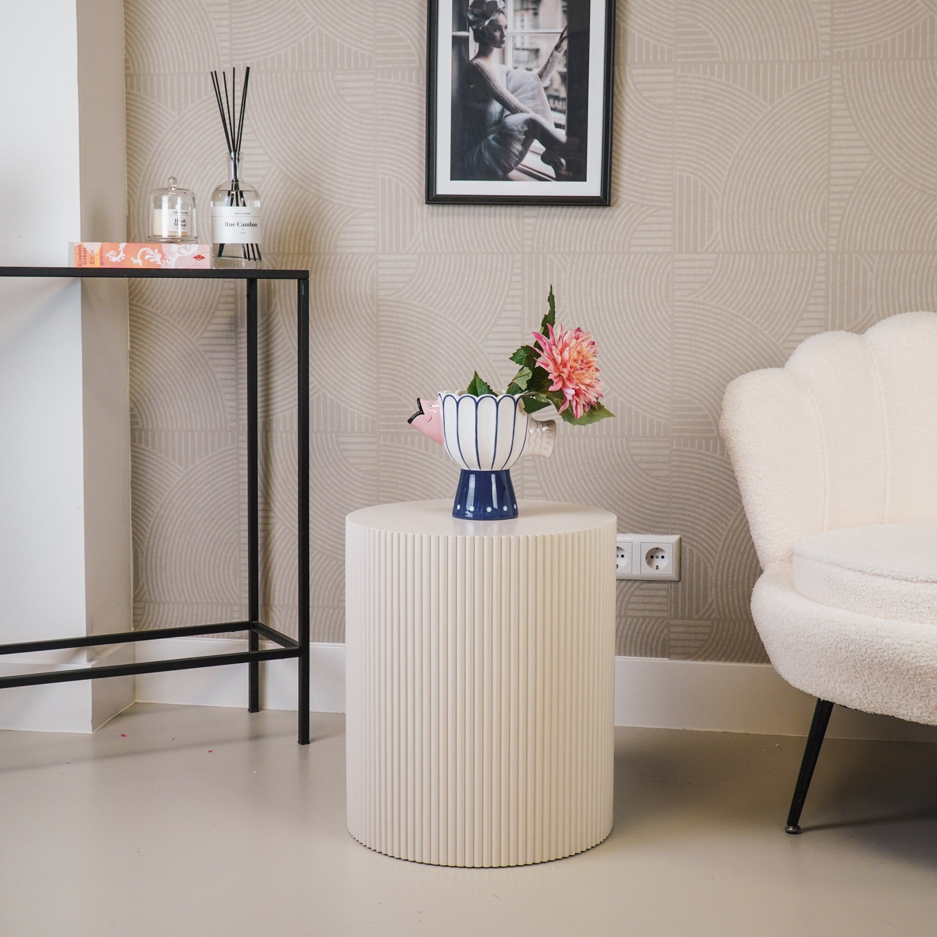 PILAAR BIJZETTAFEL - Planten en andere objecten verdienen het om te shinen, dus geef ze alsjeblieft een podium! Met deze geribbelde cilinders geef je jouw mooie items echt een podium. Dit formaat cilinder kan als pilaar of bijzettafel worden gebruikt. Jij beslist!