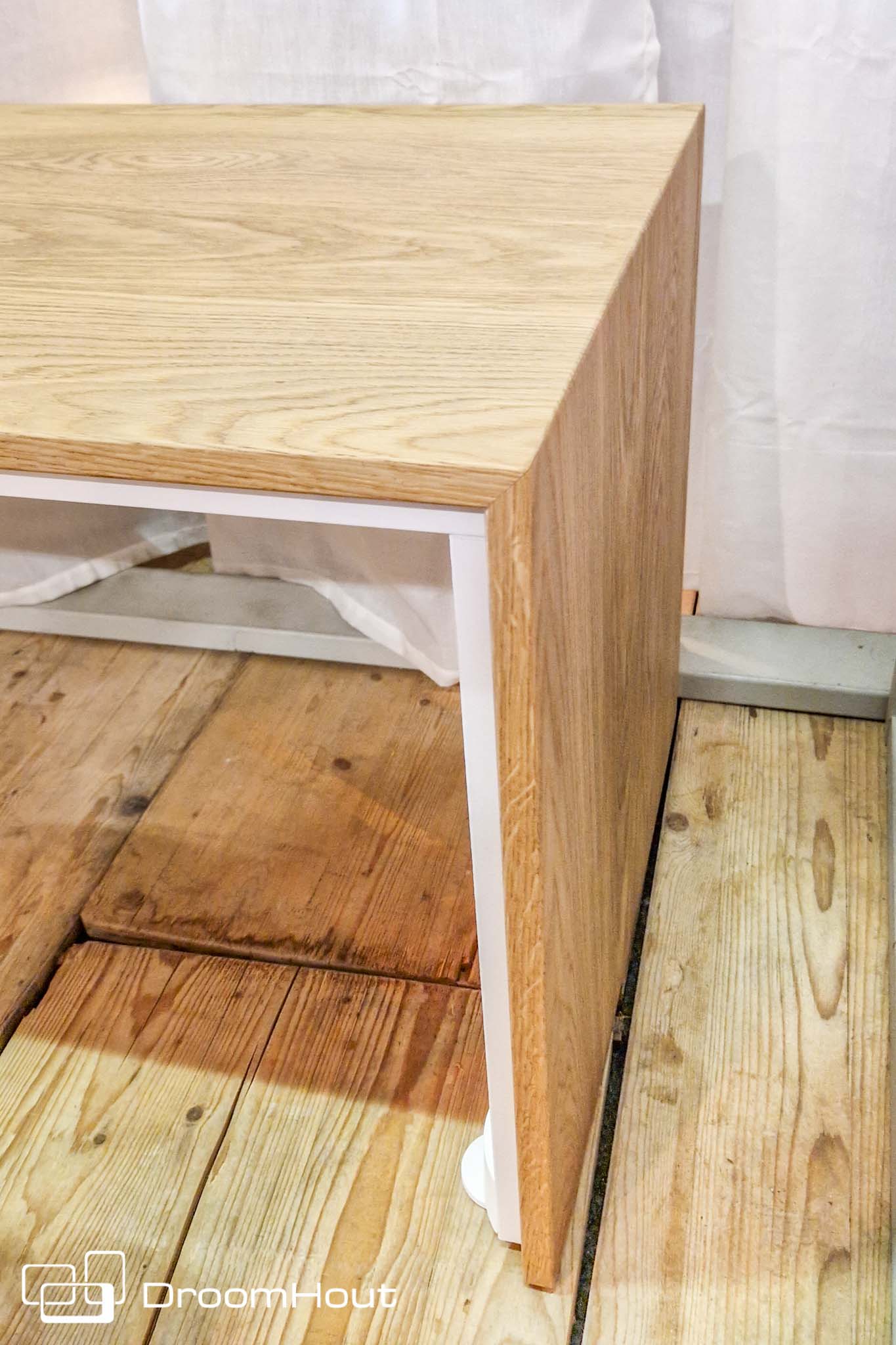 Haal het maximale uit de SMÅSTAD speelgoedkist door deze te koppelen met een massief eiken blad. Plaatst 2 kisten met minimaal een meter ruimte ertussen, plaats daar een mooi houten blad overheen en je hebt een geweldige speeltafel met opbergruimte. De kisten hebben een hoogte van ca. 50 cm, een perfecte hoogte voor kleine kinderen. Heb je meteen een heel mooie speelhoek. En sowieso, elke IKEA hack met hout is gaaf!