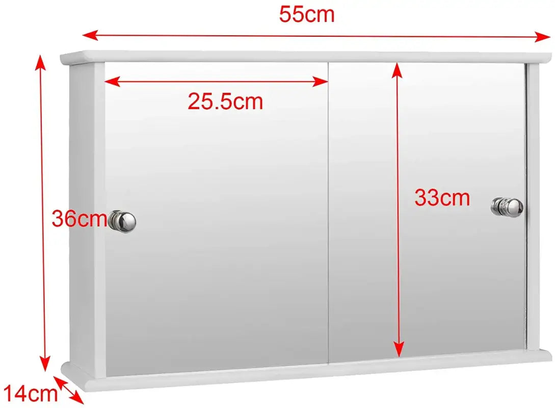 Dit veelzijdige meubelstuk past niet alleen perfect in de badkamer, maar kan ook worden gebruikt als decoratief element in de woonkamer, slaapkamer, kantoor of hotel. Met afmetingen van 55x14x36 cm past het gemakkelijk in verschillende ruimtes. Met een spiegelafmeting van 25,5x33 cm biedt het ook een handige plek om jezelf te bekijken. Met de bijgeleverde instructies is het eenvoudig te monteren en klaar voor gebruik.