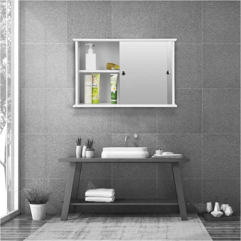 BukkitBow - Badkamermeubel met Spiegel - met Verstelbare Plank - met Schuifdeur - Waterbestendig en Eenvoudig te Reinigen - 55x14x36 cm