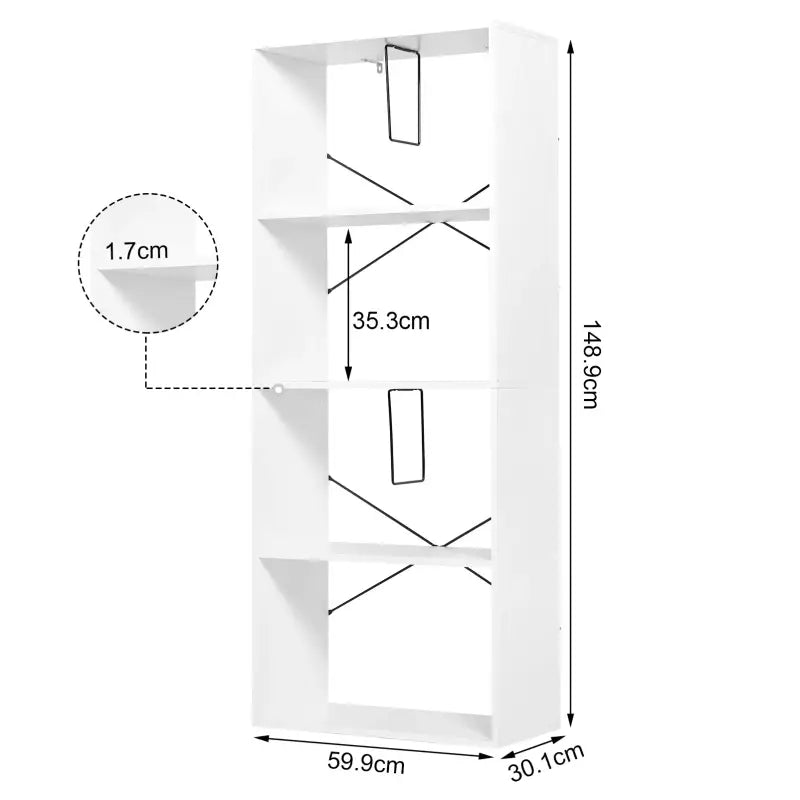 BukkitBow - Boekenkast met 4 Niveaus - met Kantelbeveiliging - Vitrinekast - Gemaakt van Duurzaam Houtmateriaal - (60x30X149cm)