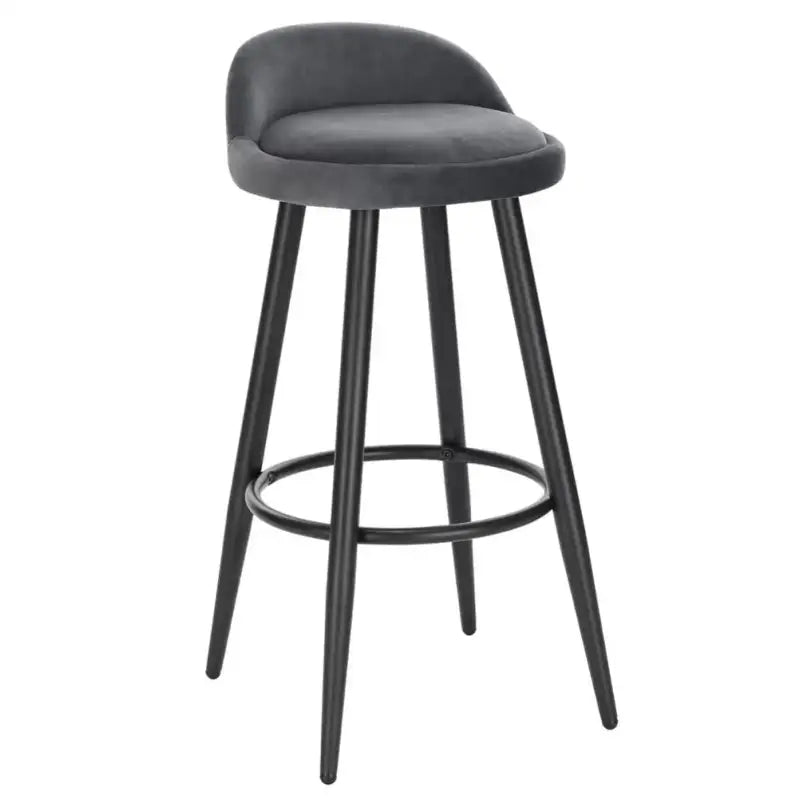 De verstelbare voetpads van de barkruk zorgen voor stabiliteit, zelfs op oneffen vloeren, terwijl ze tegelijkertijd bescherming bieden tegen krassen op de vloer. Met een totale hoogte van 78,5 cm en een zithoogte van 69,5 cm past deze barkruk perfect onder elke toonbank of tafel dankzij de lage rugleuning. De zitting is volledig gewatteerd met nieuw katoen en bedekt met een zachte fluwelen hoes, wat zorgt voor een hoog niveau van comfort, terwijl de kleine rugleuning extra ondersteuning biedt voor uw rug.