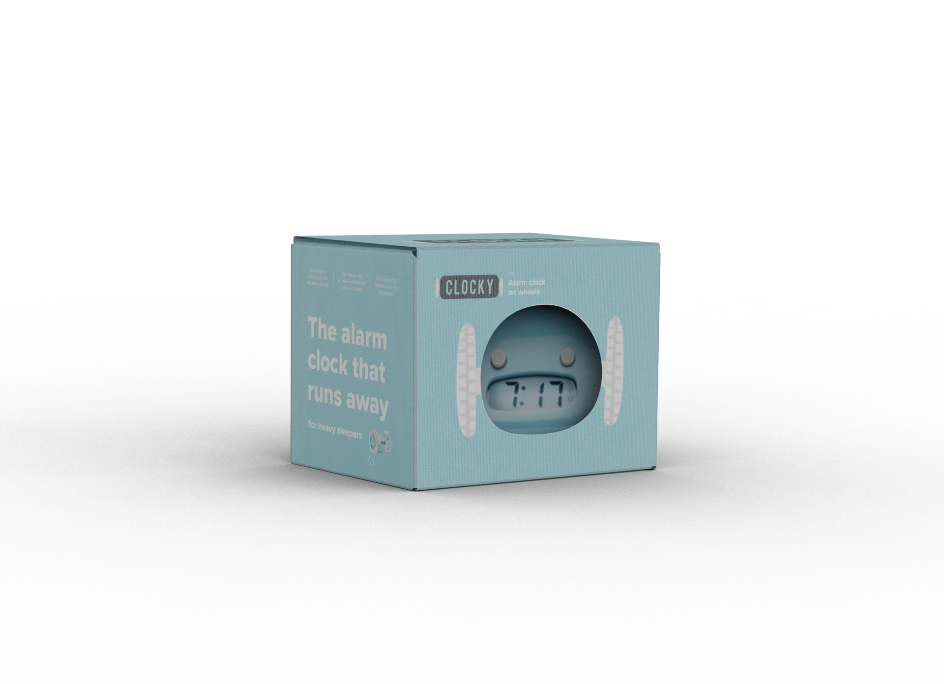 - Product: Clocky - Alarm Clock on Wheels - Blue