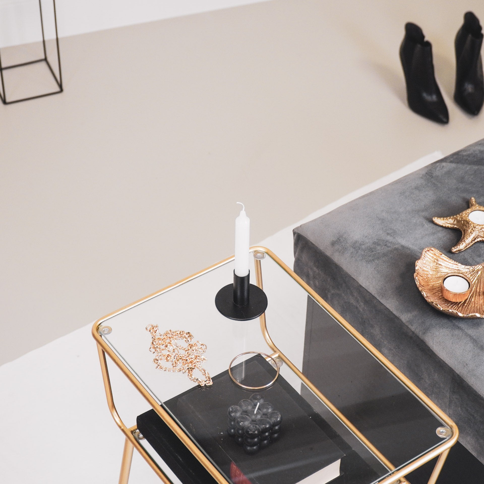 EEN INTERIEUR ZONDER KANDELAREN IS EEN INTERIEUR ZONDER ZIEL- Licht je interieur op met deze prachtige metalen kaarshouder van Housevitamin! De zwarte kleur geeft een rustige uitstraling en past gauw in ieder interieur. Met een afmeting van 8x8x6,5 cm is deze kandelaar ideaal voor een dinerkaars. Creëer een gezellige sfeer als de schemer intreedt en geef je eettafel de finishing touch die het verdient. Laat je interieur stralen met deze must-have accessoire!