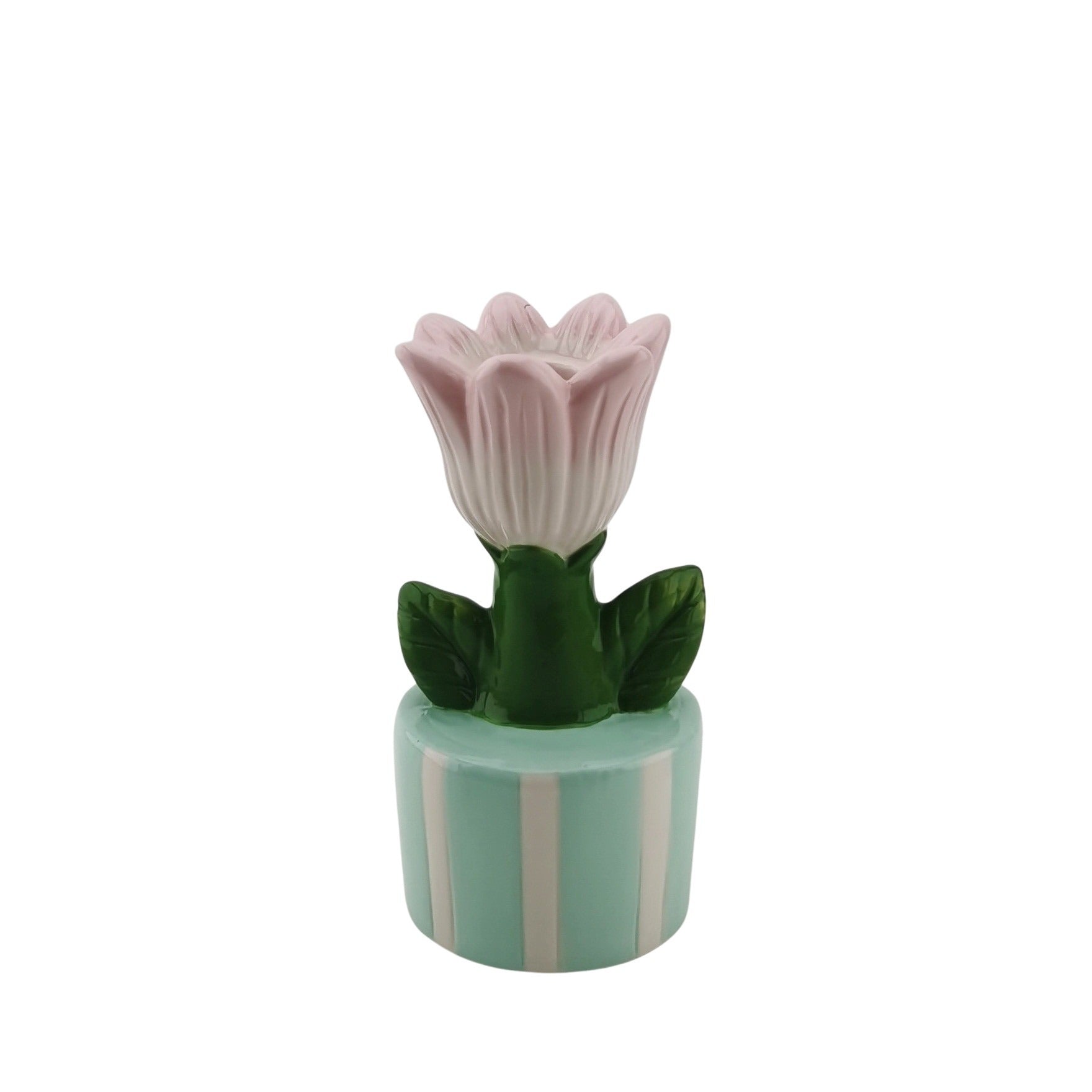 Kaarshouder- Kandelaar Tulp- Dolomiet- Mint/ Licht Roze- 9x8,5x17,5cm