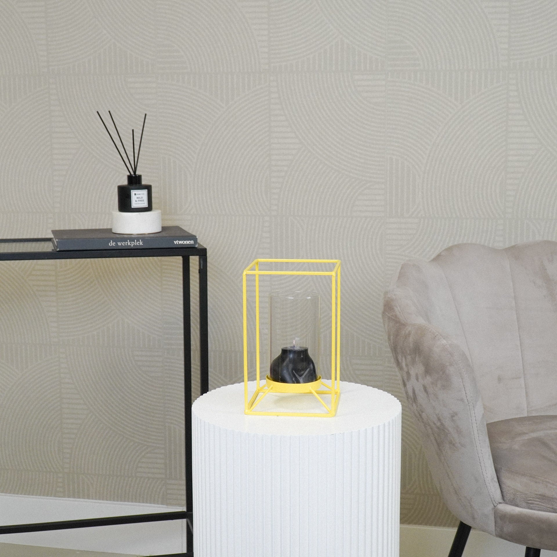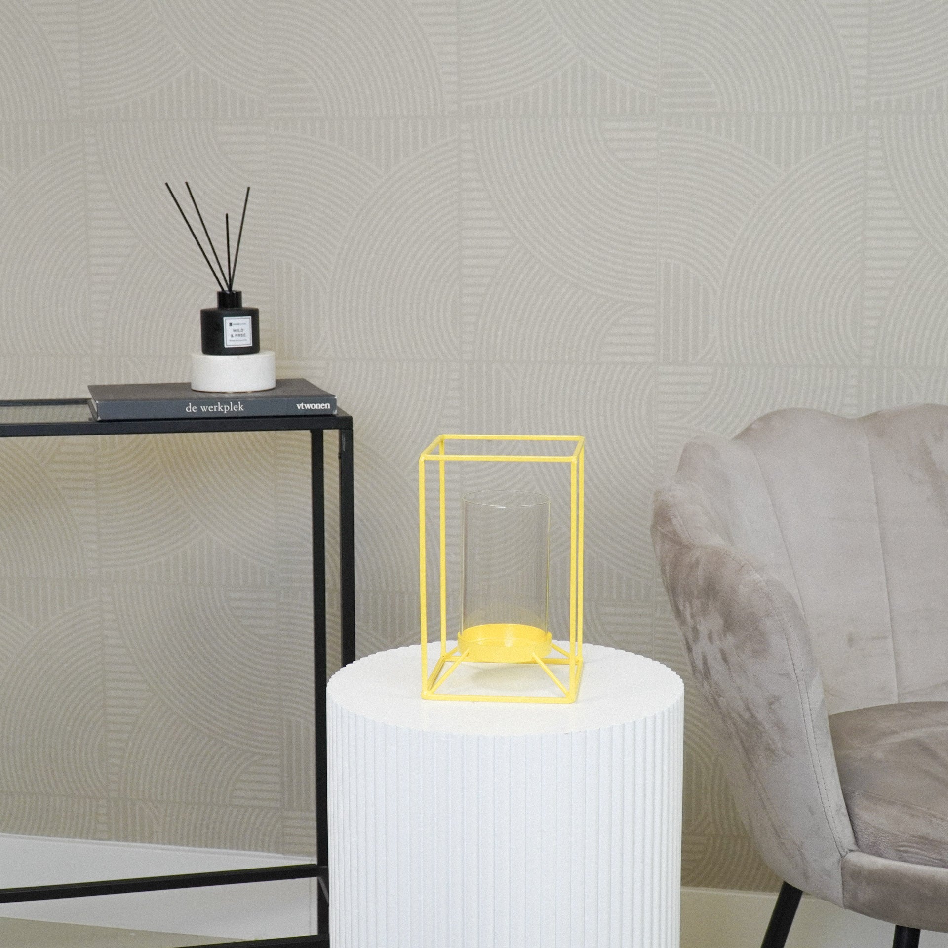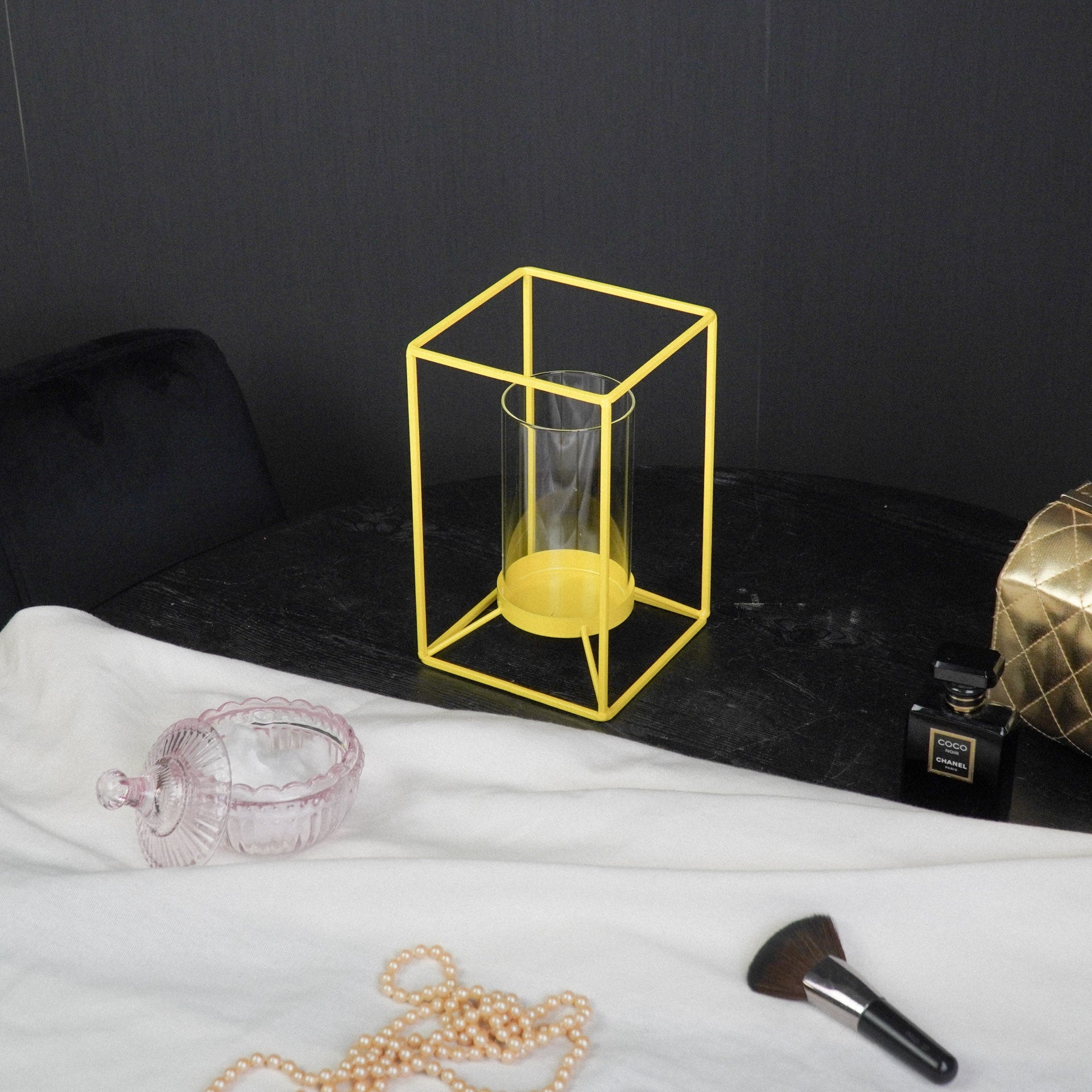 SHINE A LIGHT - Op zoek naar de perfecte sfeermaker voor in huis? Zoek niet verder! Deze fel gele metalen kaarshouder met glazen windlicht is precies wat je nodig hebt. De combinatie van metaal en glas zorgt voor een stijlvolle uitstraling, terwijl de afmetingen van 12,5x12,5x20 cm perfect zijn voor elke ruimte. Creëer een warme en gezellige sfeer in huis met dit prachtige windlicht van Housevitamin.