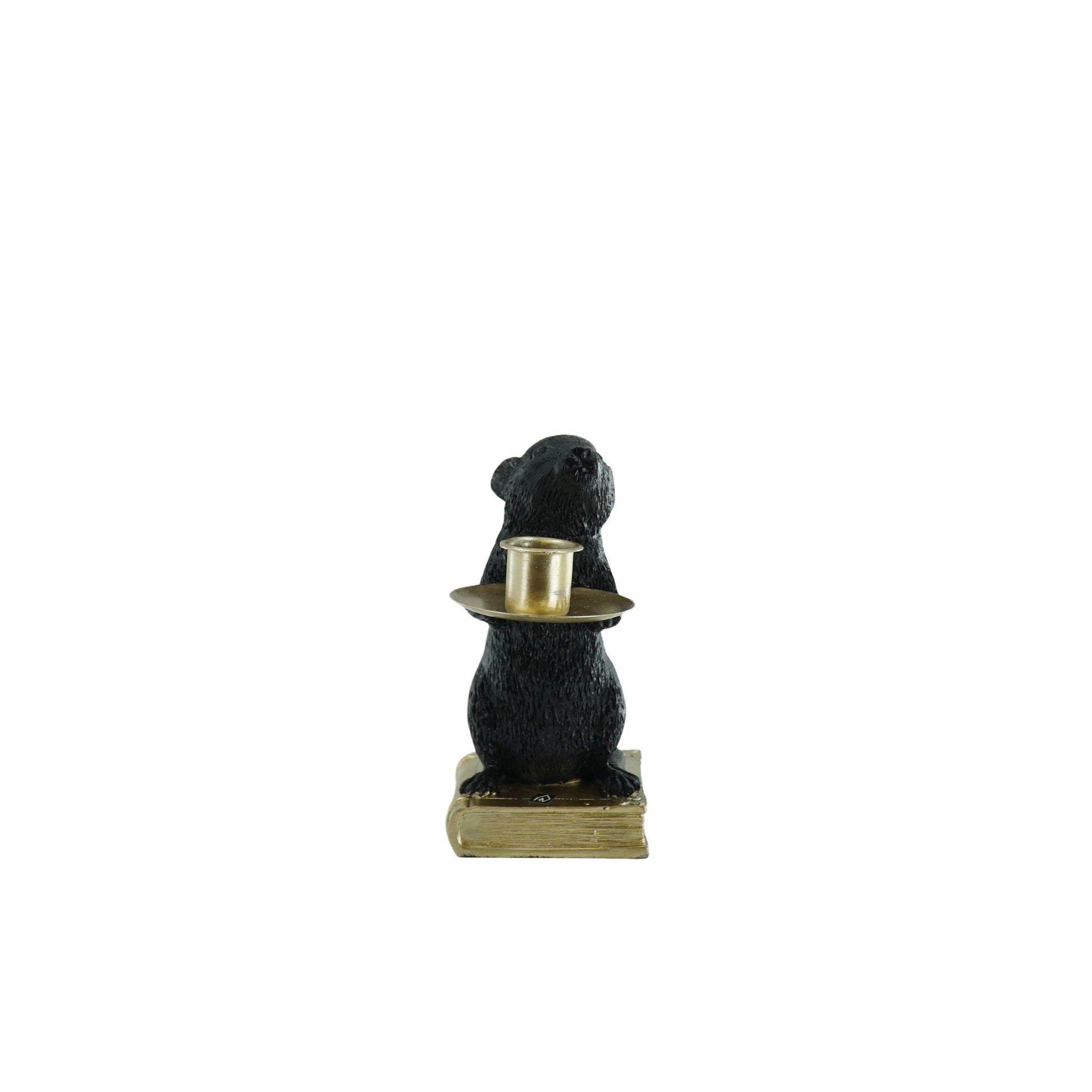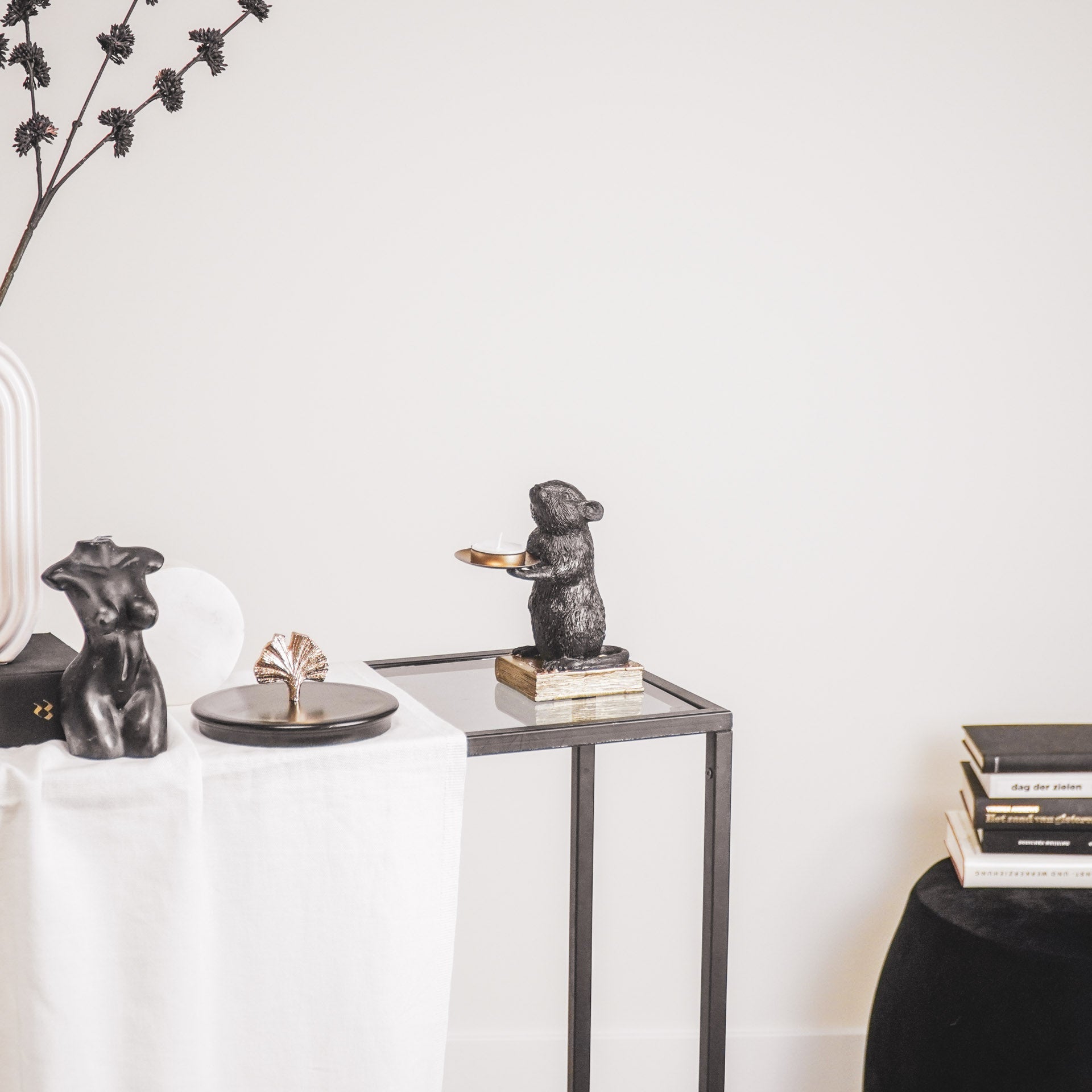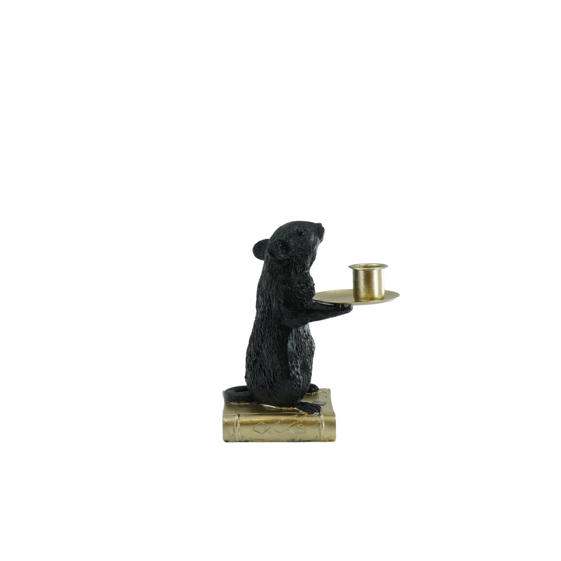 Kandelaar - Muis - Polyresin - Zwart - 8x10x17cm