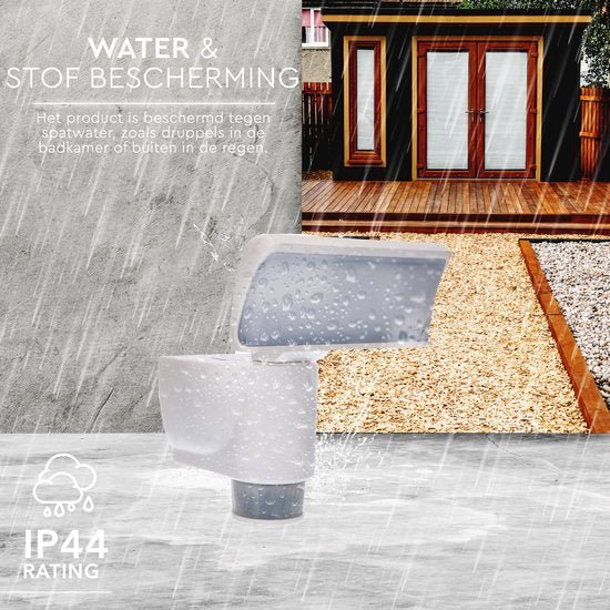De lamp heeft een stralingshoek van 120 graden en is voorzien van een neutraal wit licht. Bovendien is de lamp spatwaterdicht en kan de stralingshoek worden aangepast door de lamp omhoog of omlaag te draaien.