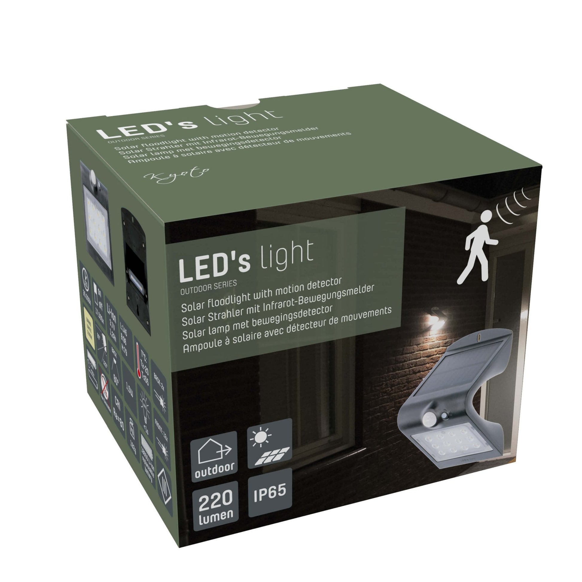 LED's Light Solar LED Buitenlamp met Bewegingssensor 220 - 3 lichtstanden - Automatisch aan/uit - Zwart