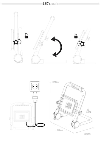 LED's Work Bouwlamp 5500 - Inklapbaar & Kantelbaar - 3 meter snoer - IP65 - 30W