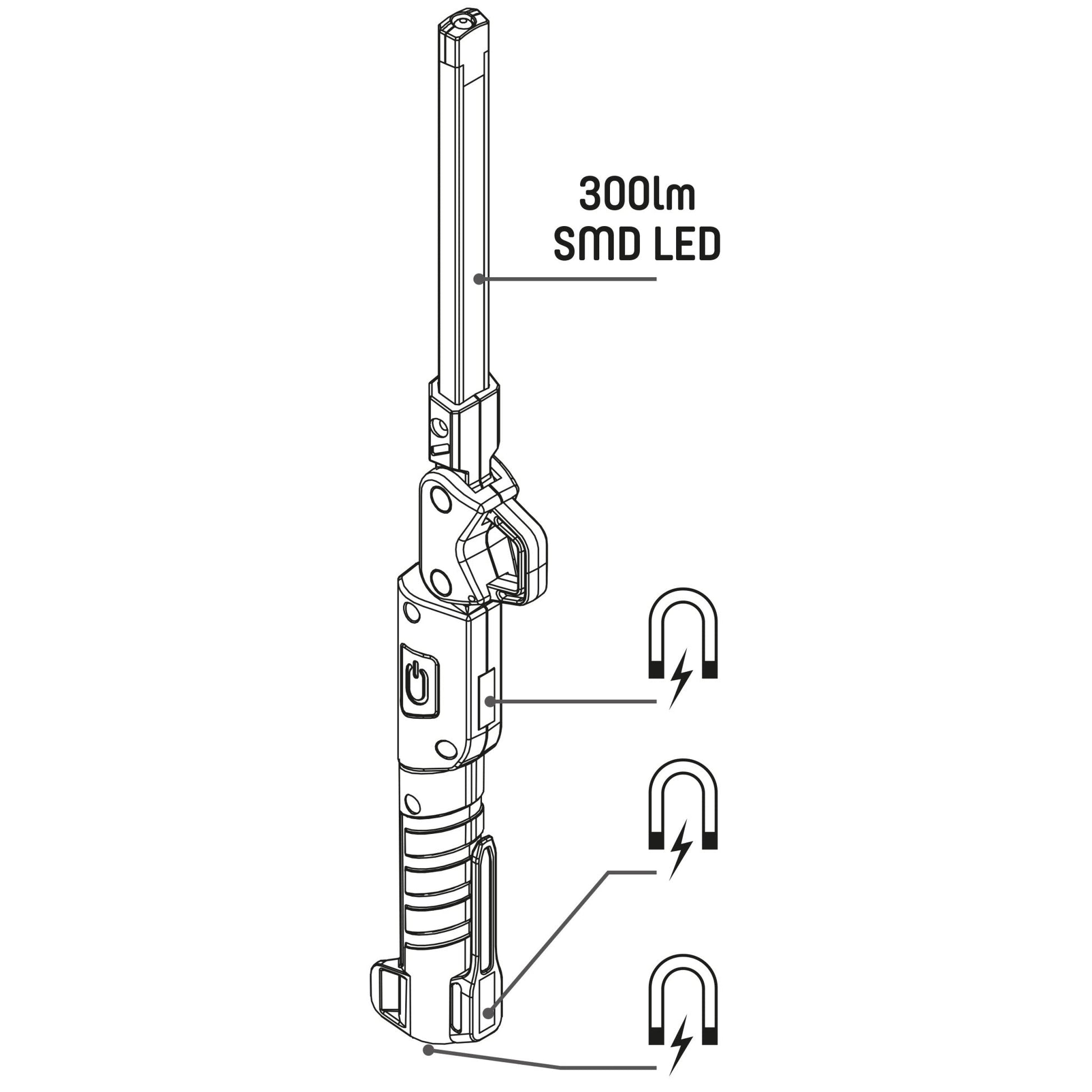 LED's Work Oplaadbare Looplamp 300 - Inspectielamp - Inklapbaar & Draadloos - Met magneet en haak
