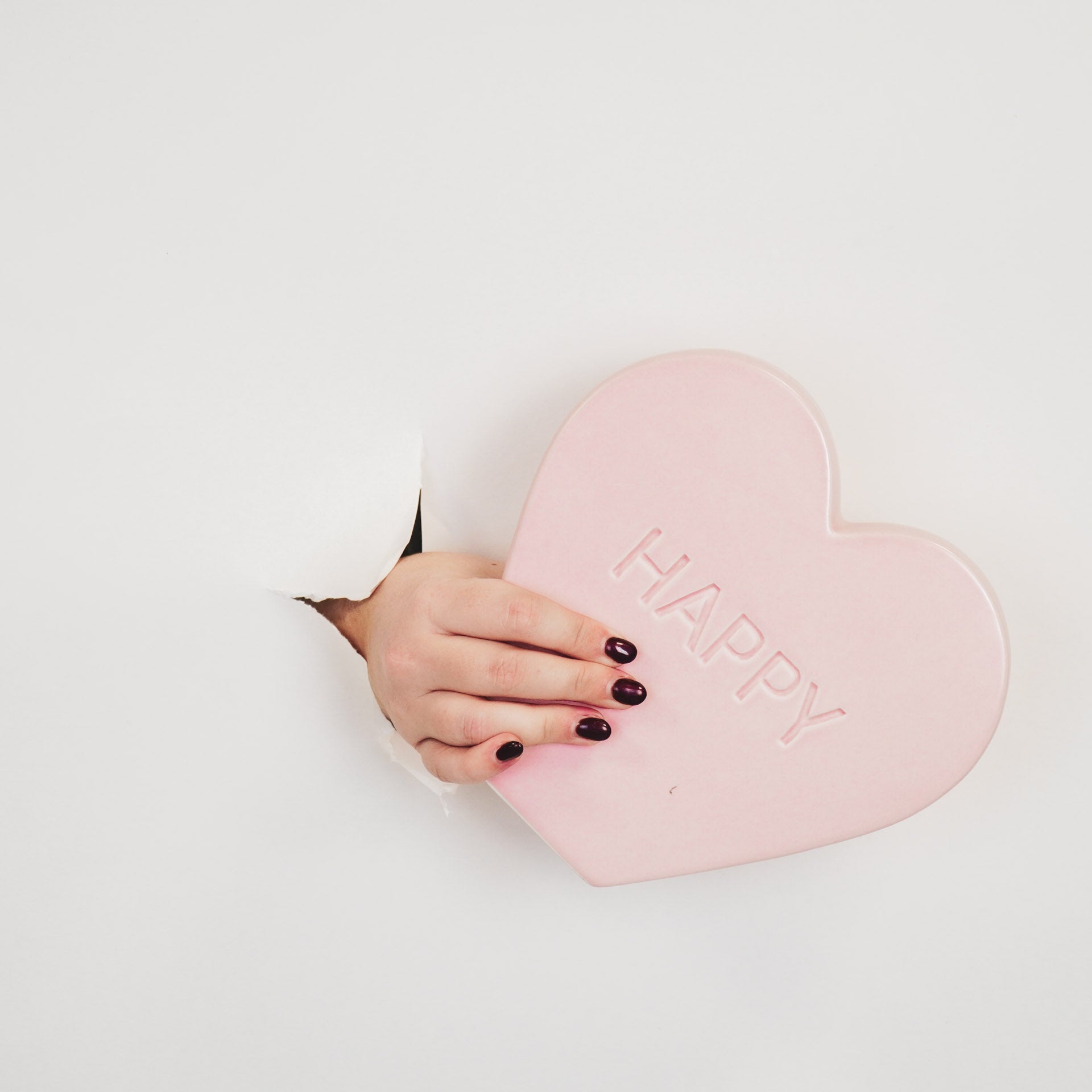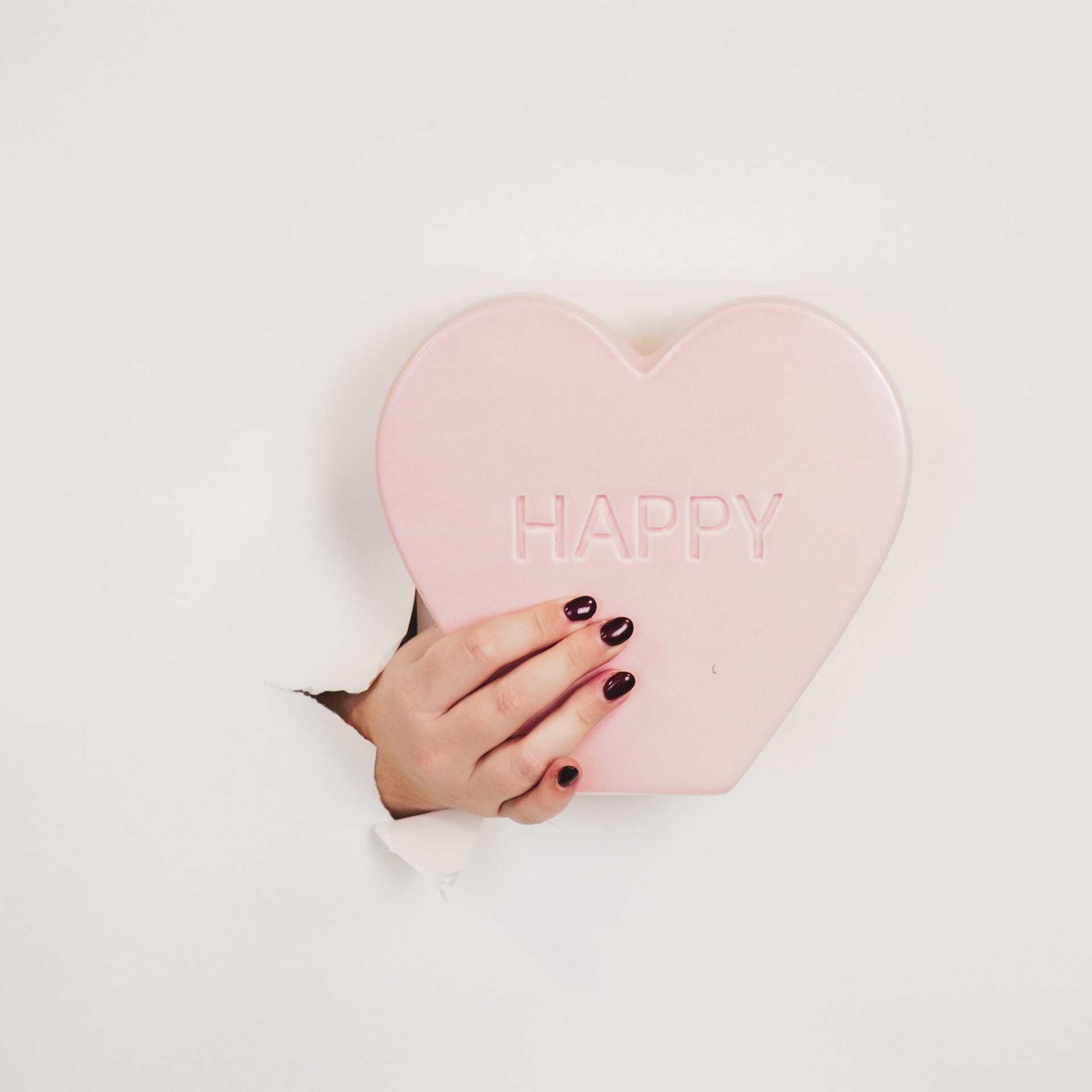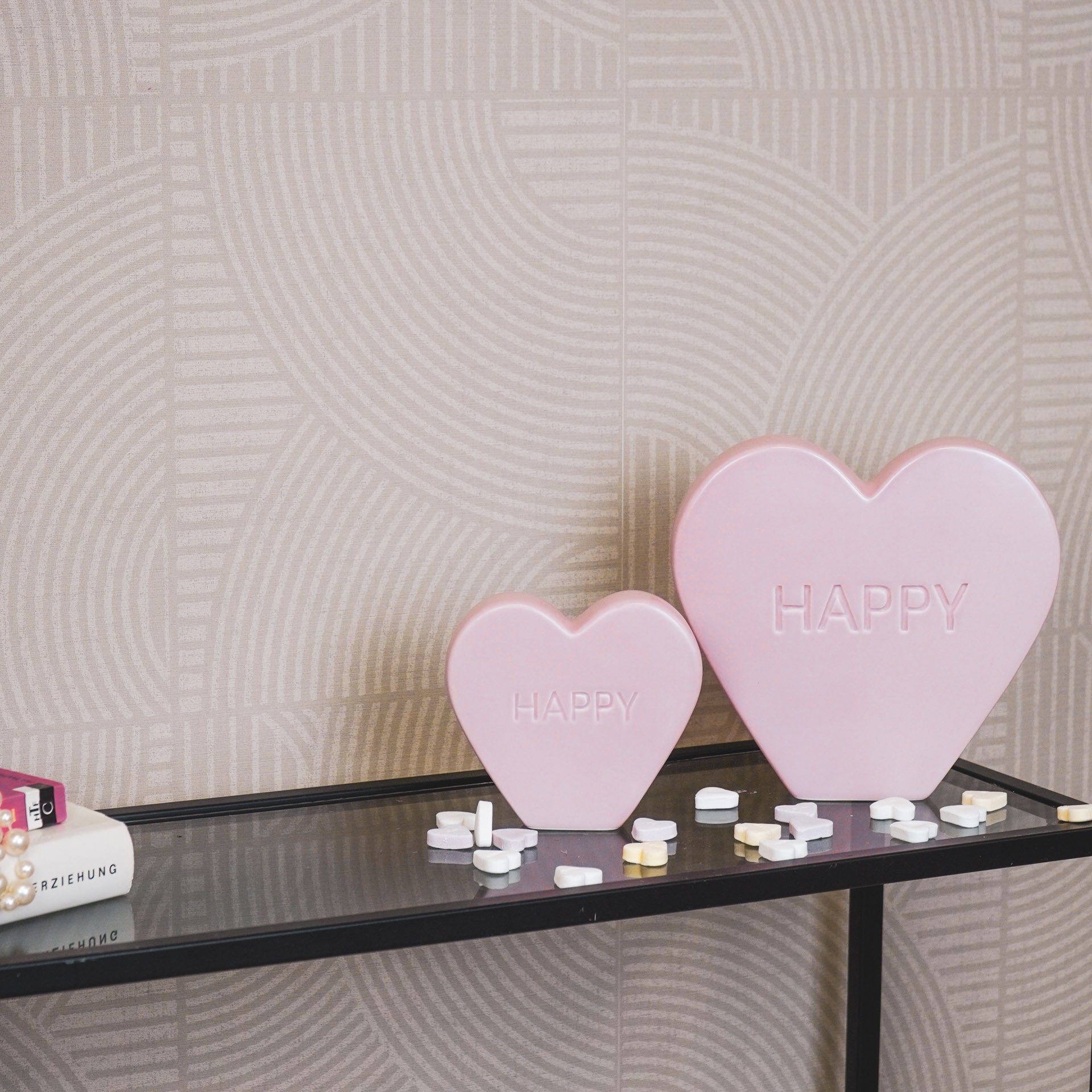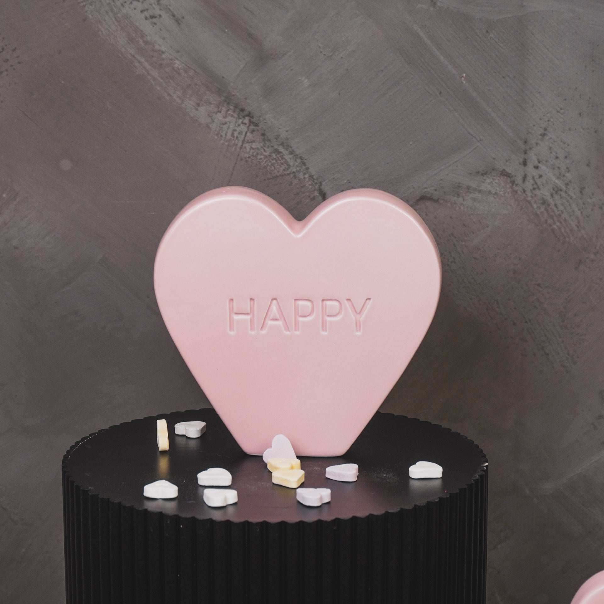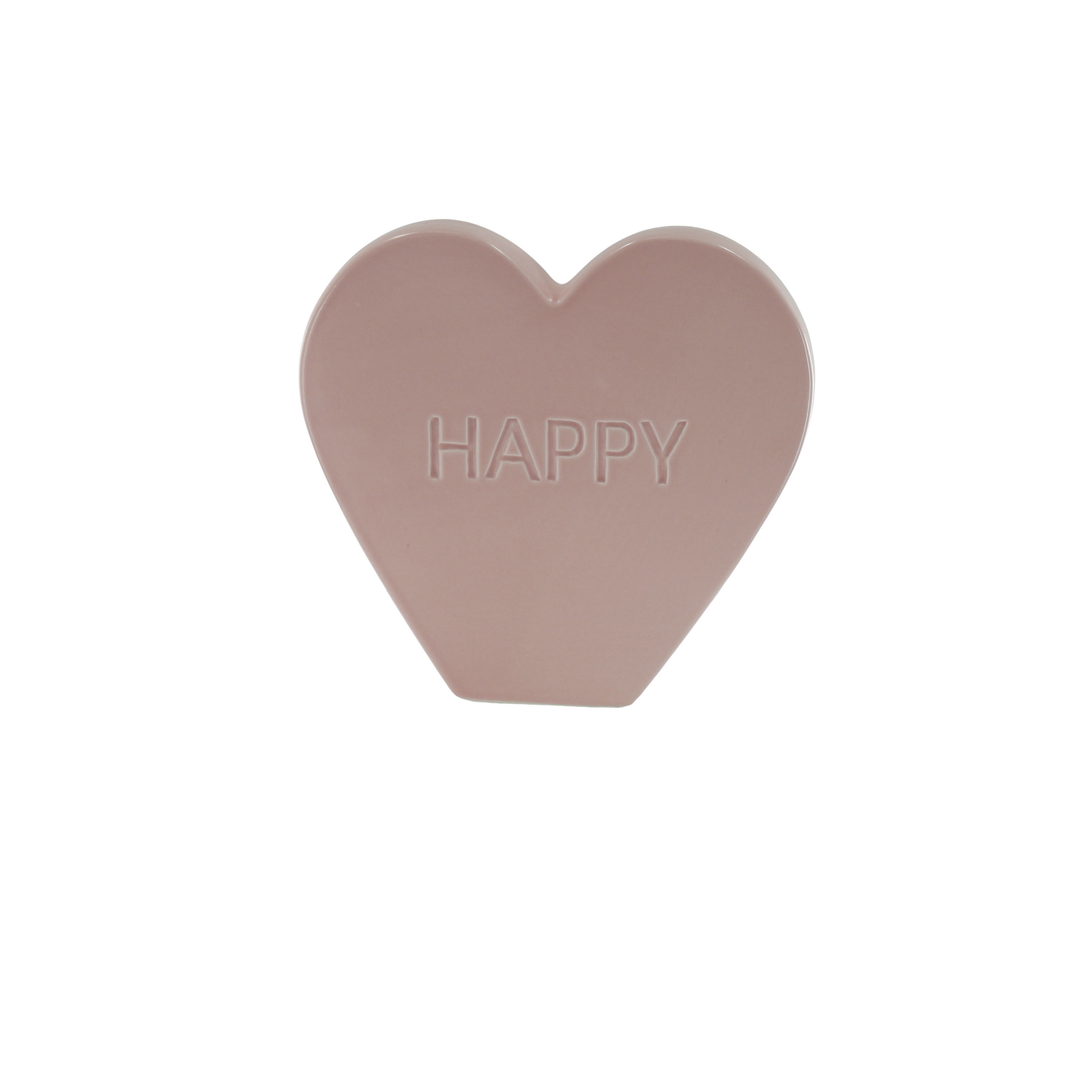 Ornament- Snoephart Beeld 'HAPPY'- Keramiek- Licht Roze- 20x4x18,5cm