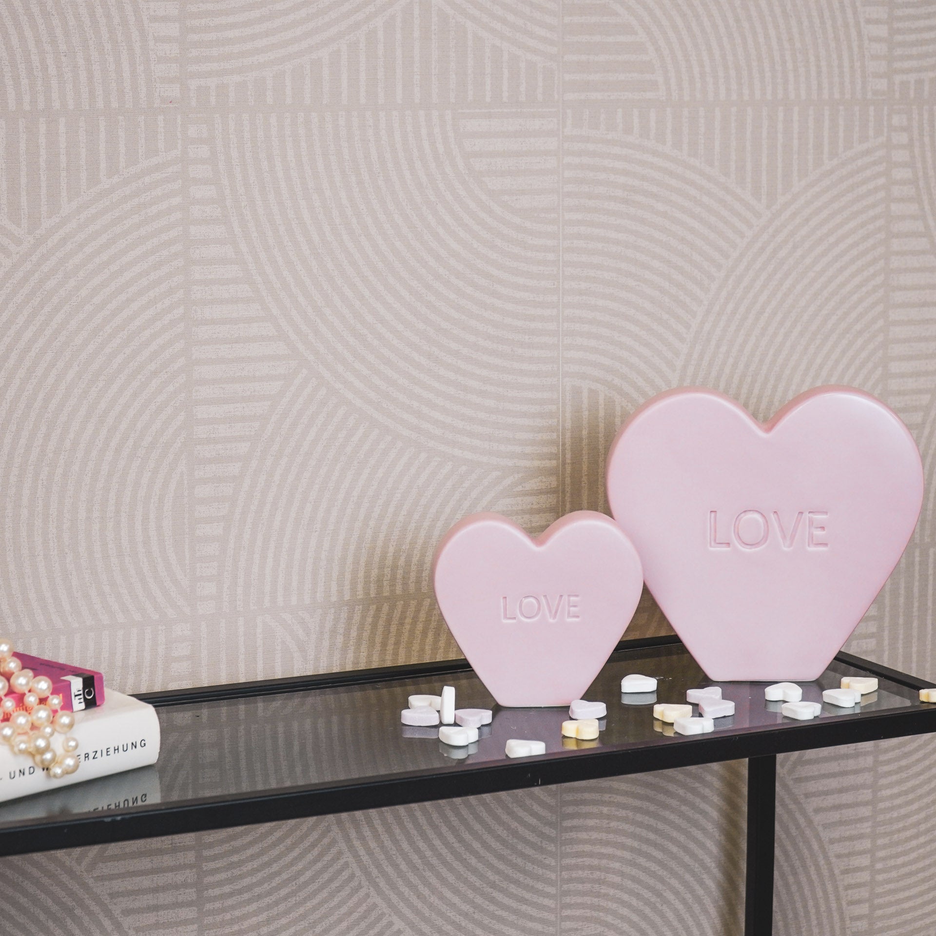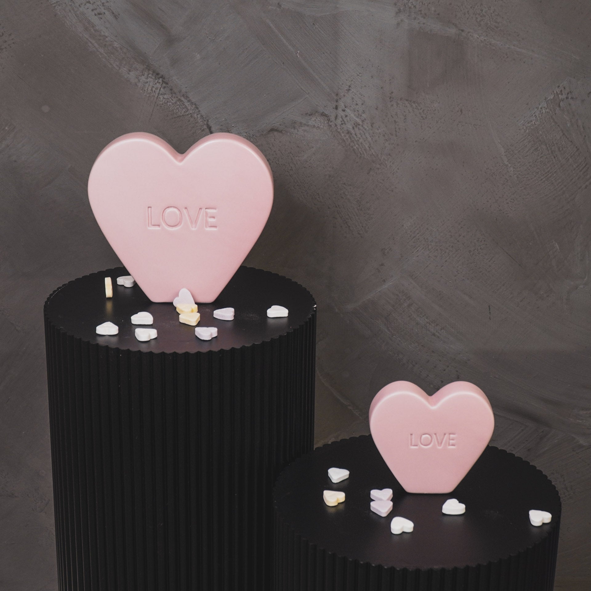 Ornament- Snoephart Beeld 'LOVE'- Keramiek- Licht Roze- 20x4x18,5cm