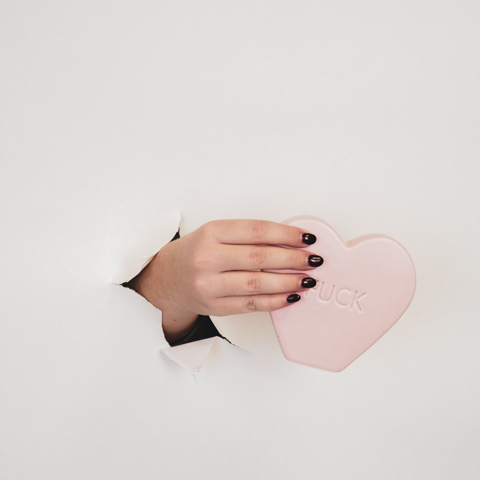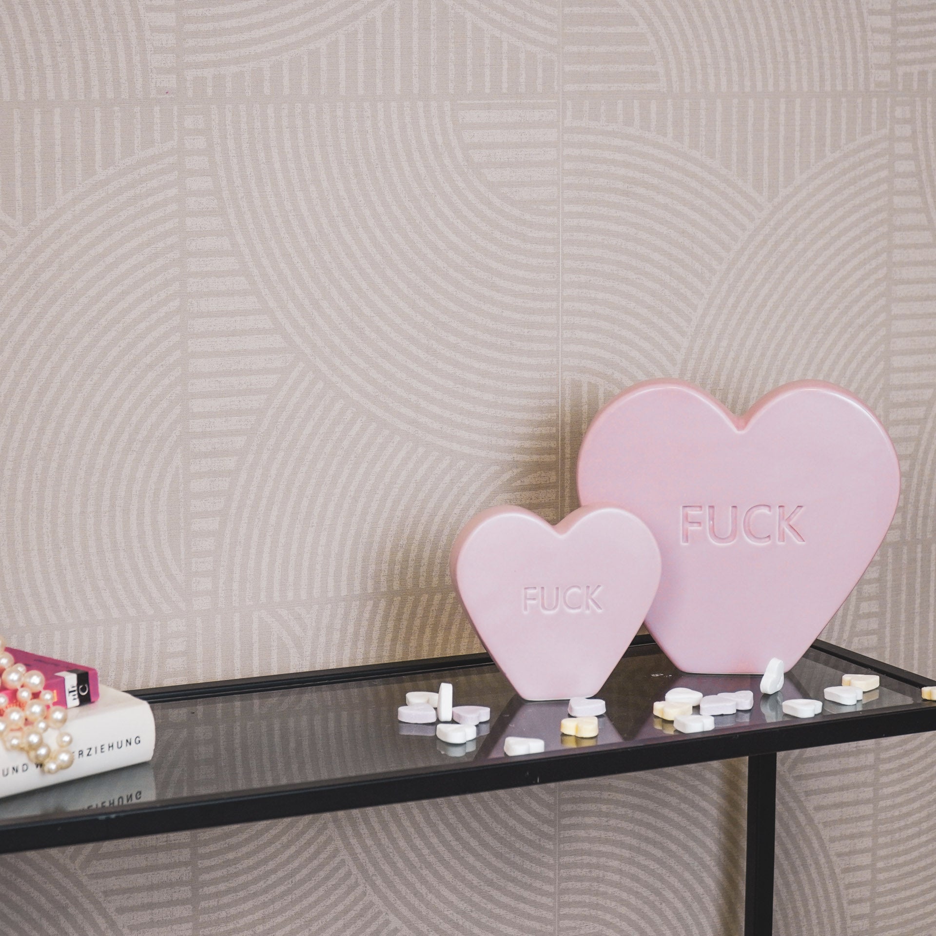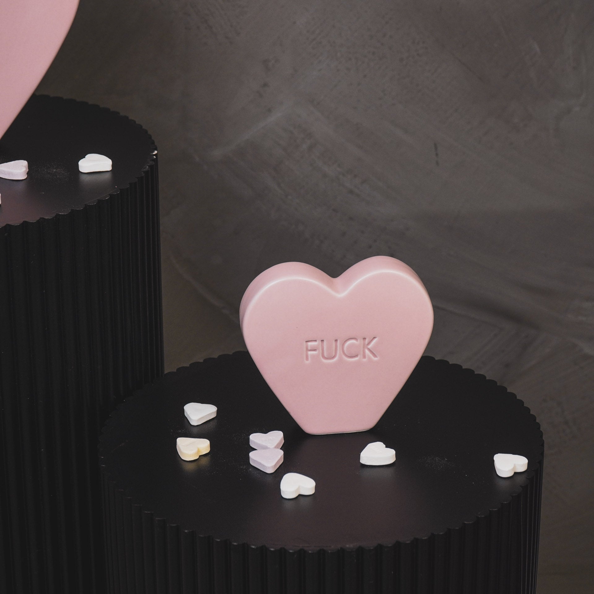 Ornament- Snoephart Beeldje 'FUCK'- Keramiek- Licht Roze- 13x4x11,5cm