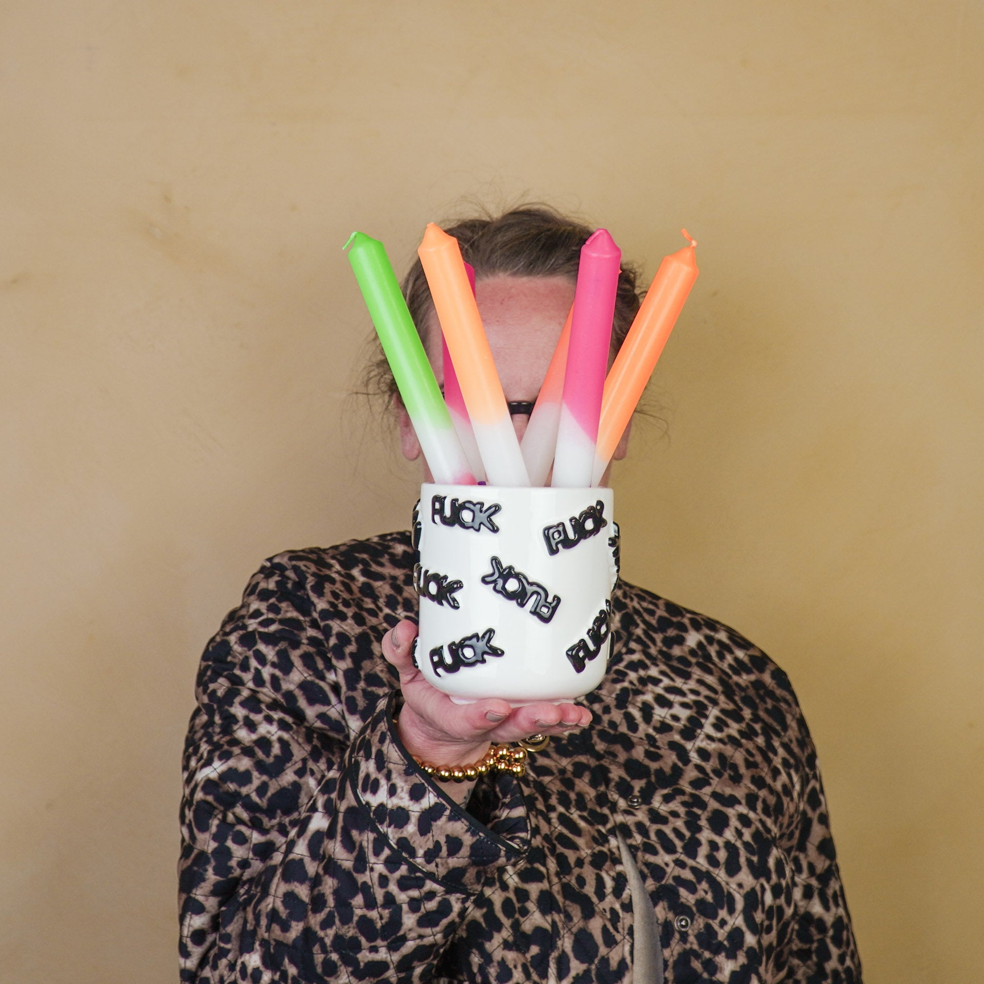 Styling tip: Geef hem een mooie plek ergens in huis, dat verdient deze planten pot met fuck woorden.