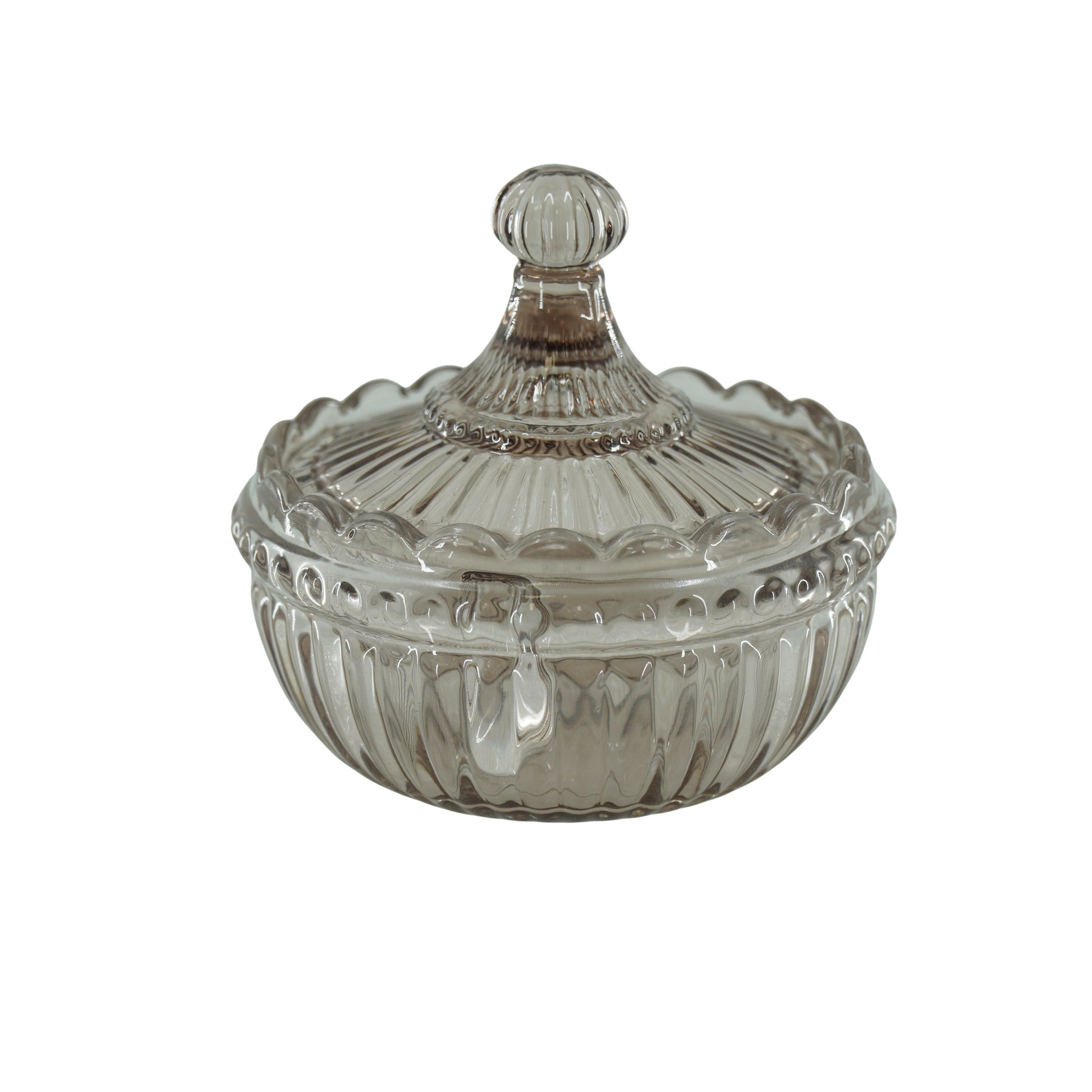 Sierpotje - Opbergpotje met deksel - Glas- Bruin - 9,5x9,5cm