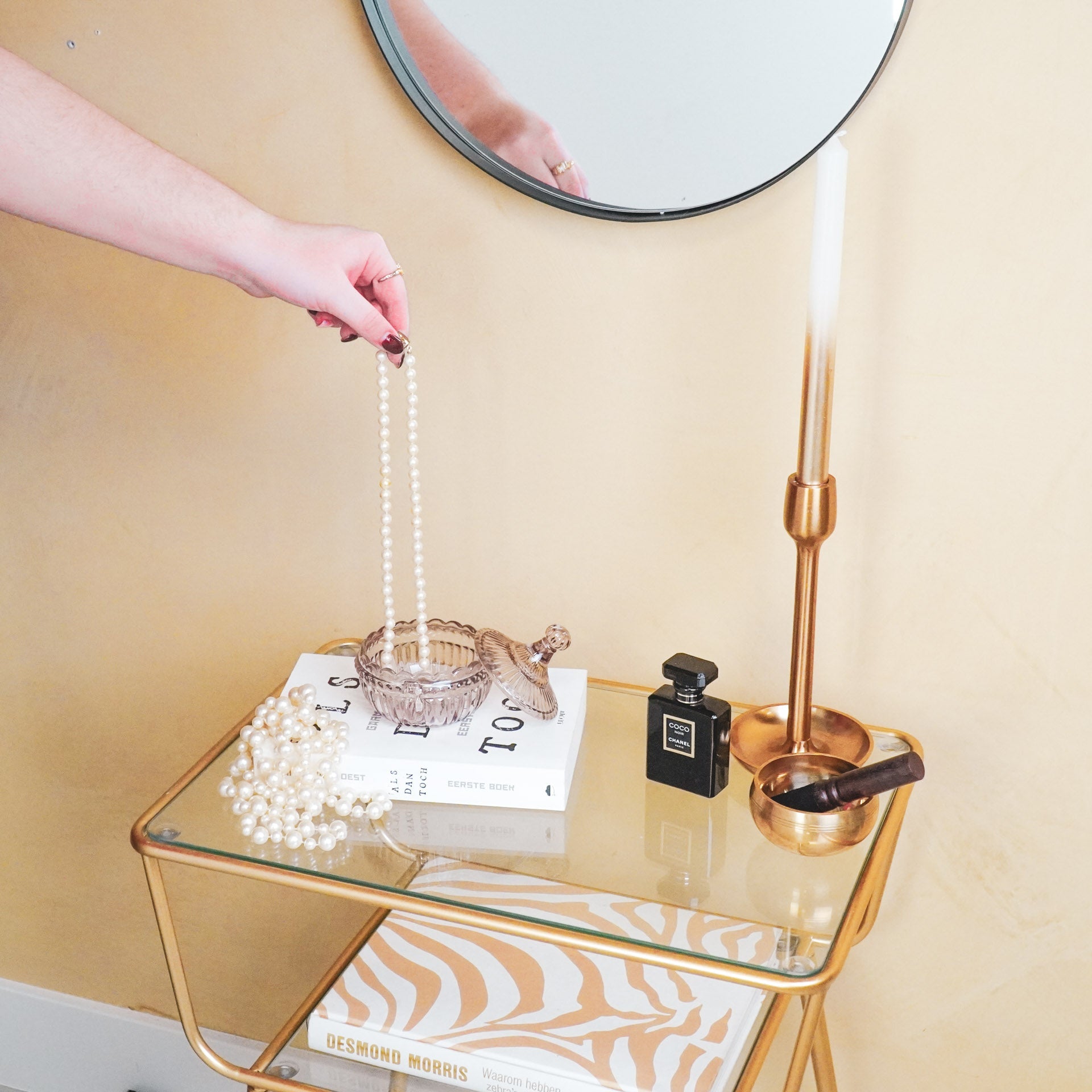 Styling tip: Dit bruine glazen sierpotje is de ideale opberger voor wattenstaafjes of wattenschijfjes
