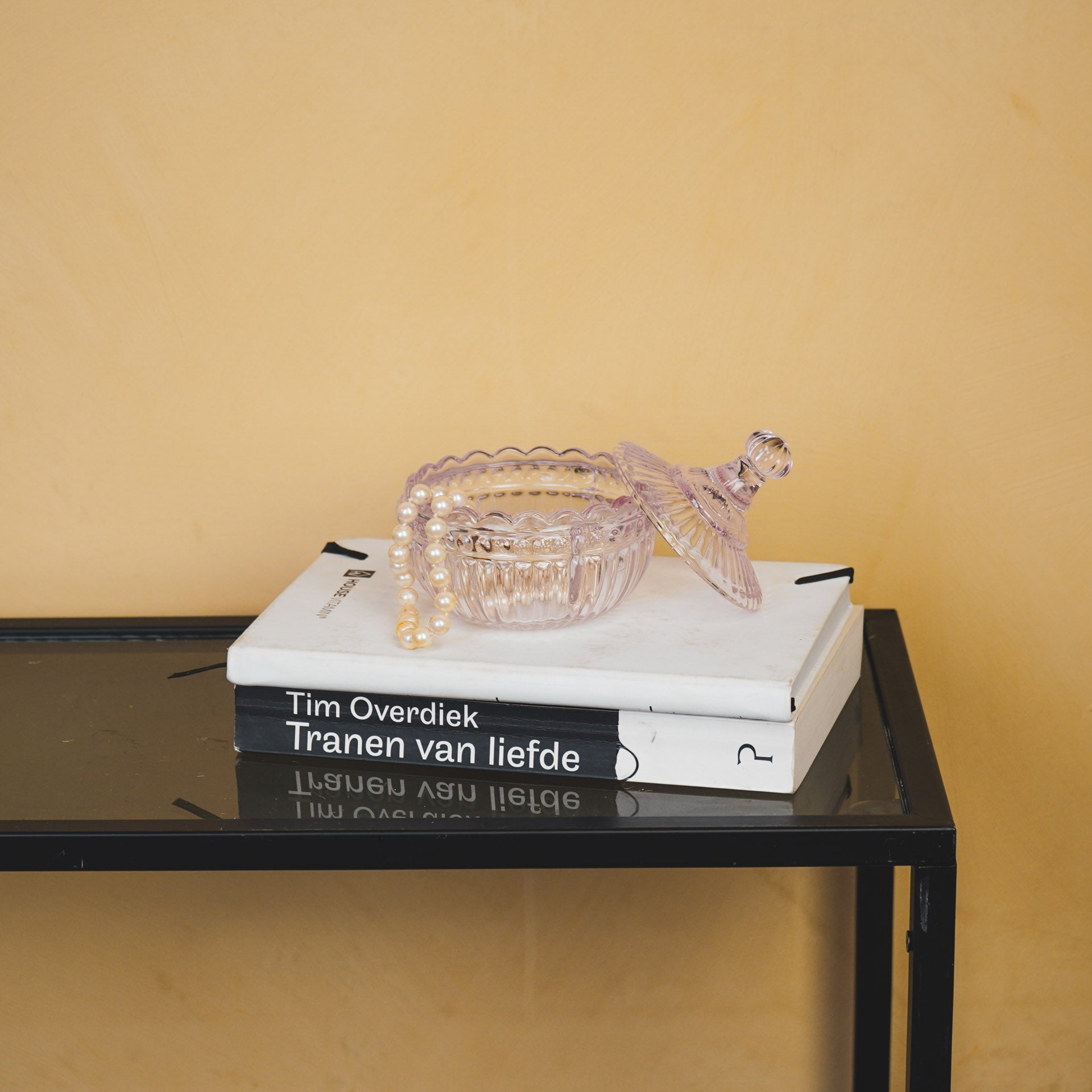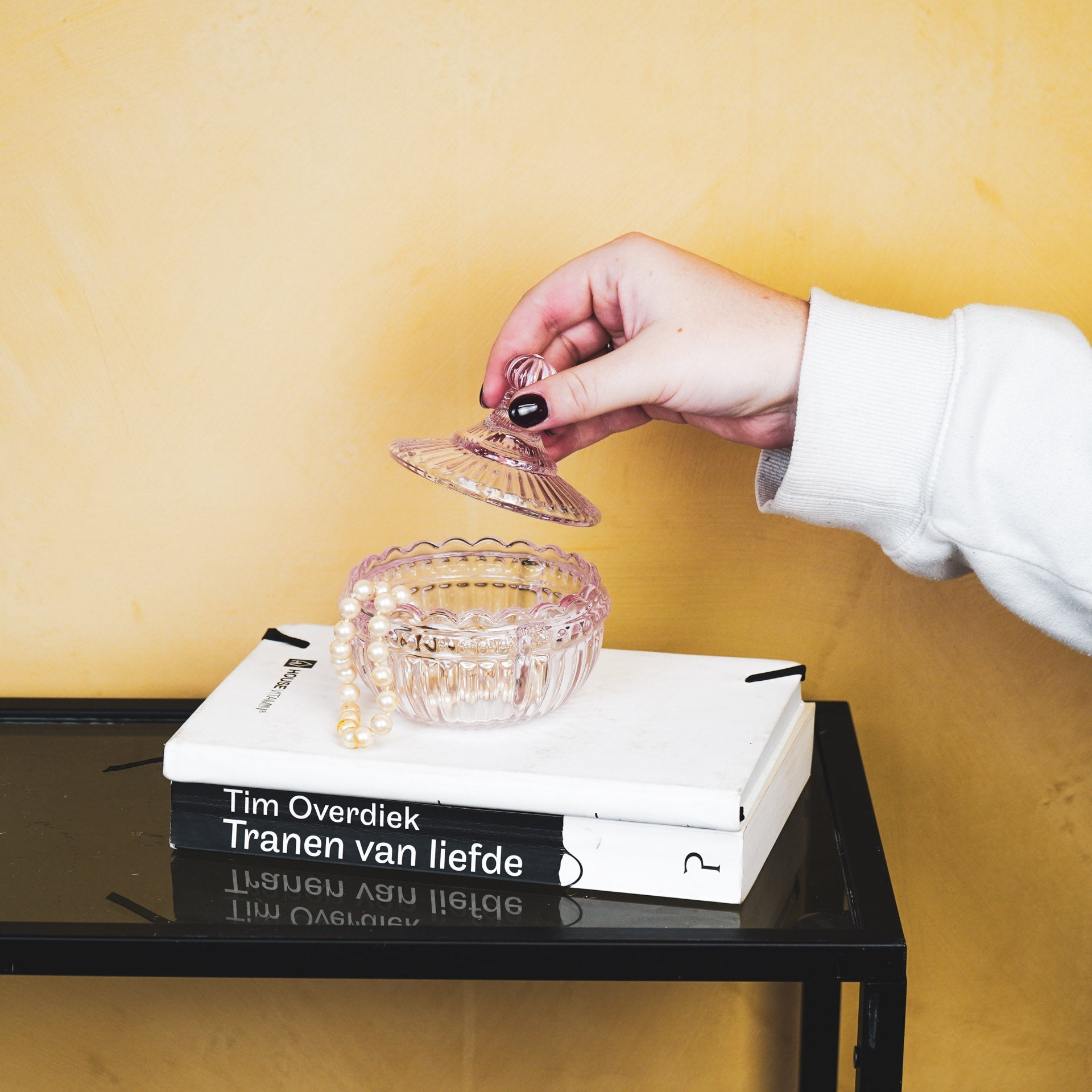Sierpotje - Opbergpotje met deksel - Glas - Roze - 9,5x9,5cm