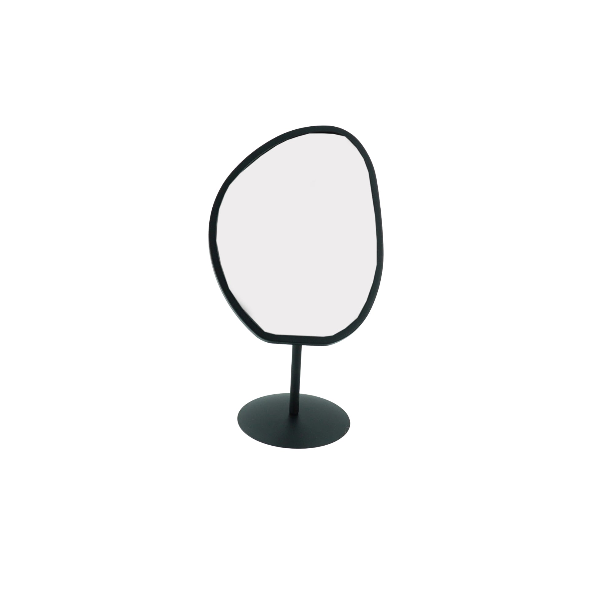 Spiegel - Make up Spiegel- Organisch Rond - Metaal - Zwart - 16,5x12x31,5cm