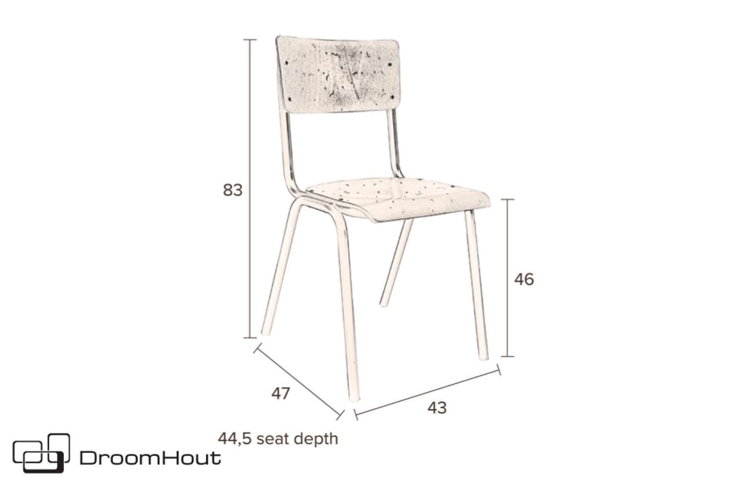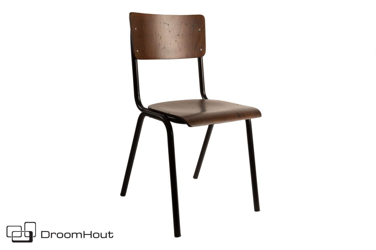 Scuola is stapelbaar en zeer geschikt voor intensief gebruik. Perfect voor bars en restaurants. De rug en zitting van stoel Scuola is van beuken multiplex. Het multiplex is gebeitst in een mooie walnooot kleur en afgelakt met een transparante vernis. Het frame is van zwart gepoedercoat staal. De afmeting van Scuola is 43 x 47 x 83 cm (BxDxH). De zithoogte is 46 cm en zit diepte 44,5 cm. De maximale gewichtsbelasting die stoel Scuola kan dragen is 120 kg. Natuurlijk niet als ze gestapeld zijn!