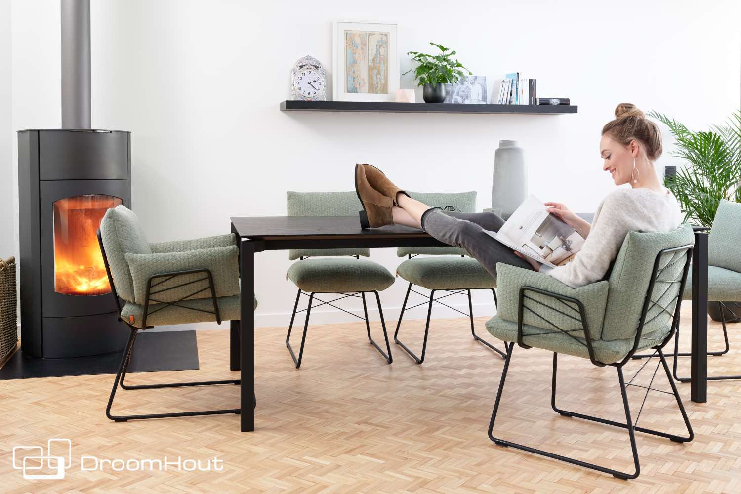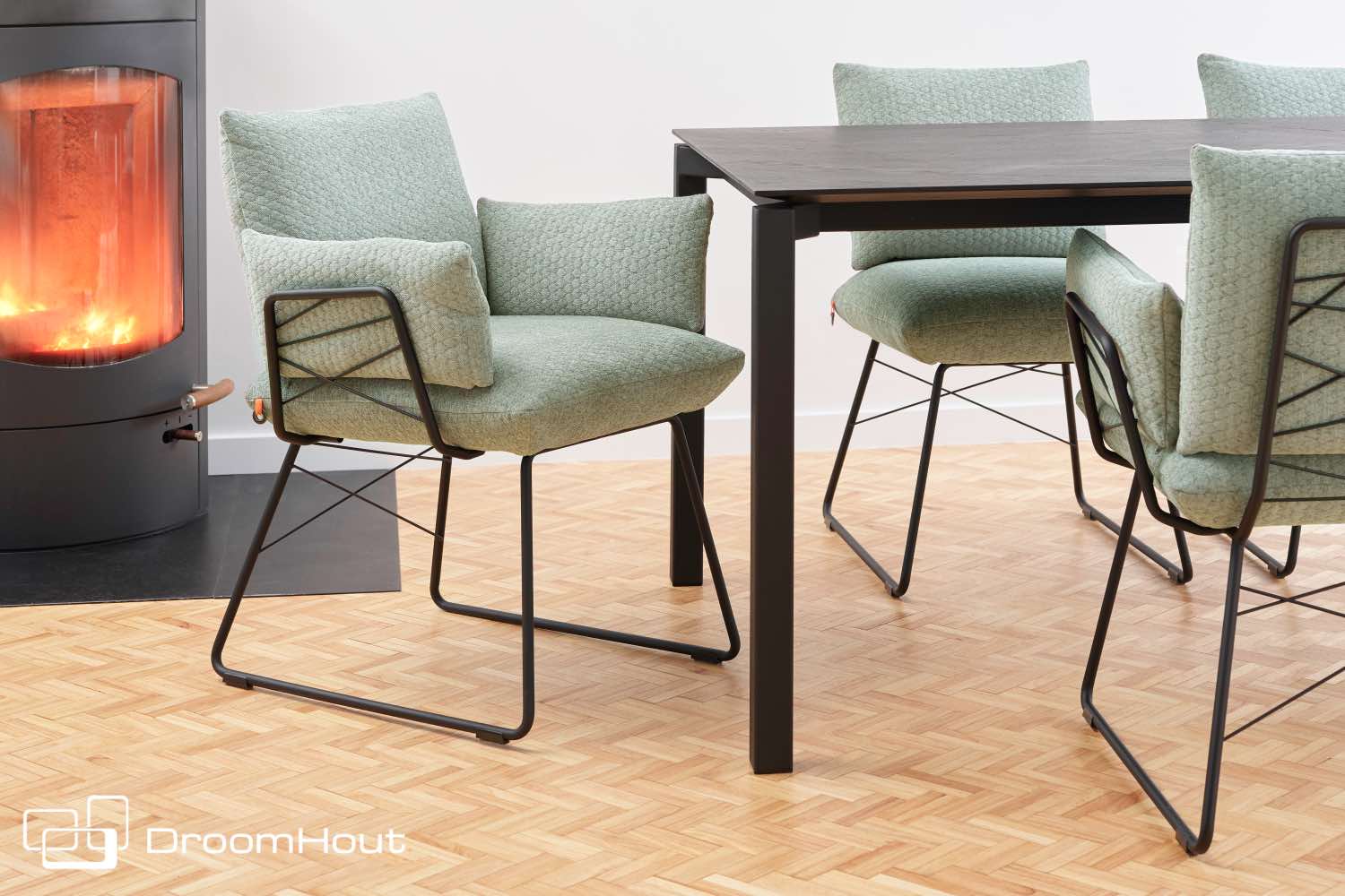 Kom je proefzitten bij ons? De Cosy is er mét en zonder armleuningen. En misschien nóg leuker, een matching Cosy eetkamerbank! Dan kun je meteen zien dat er naast de afgebeelde stoere stoffen nog veel meer keuze is in stoffen en in kleuren onderstel! De stoel is getest tot een gewicht van 120 kilo.