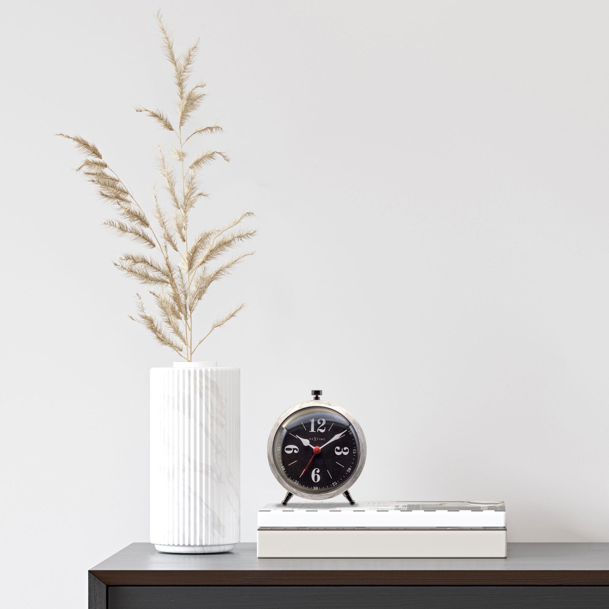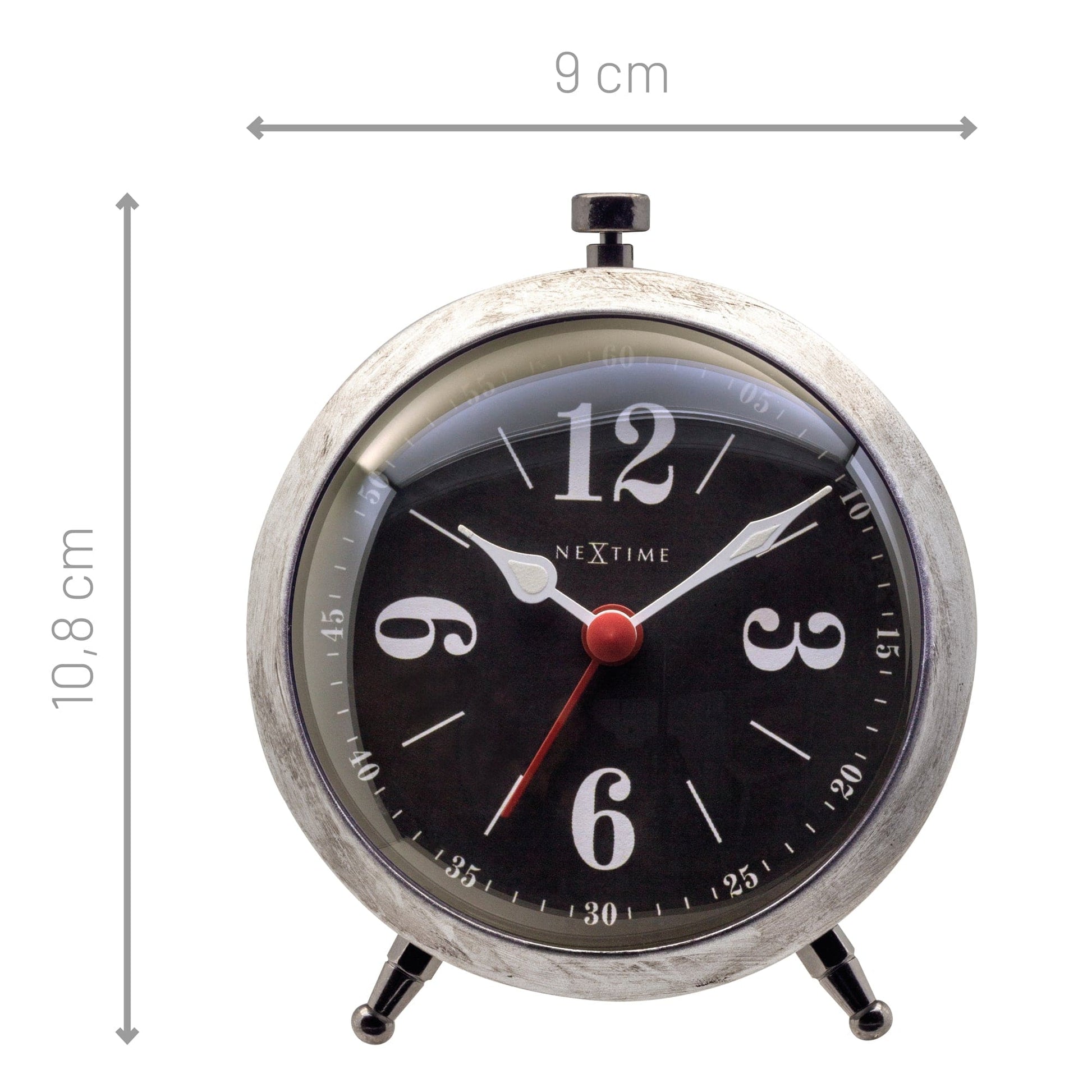 NeXtime's Harvey table and alarm clock features a chic metal case and dome glass to create a contemporary classy silhouette. Measuring 9x10cm, it only takes up a little space and will fit nicely into any compact home. The clock is silent and its luminous hands make it easy to read the time in the dark.