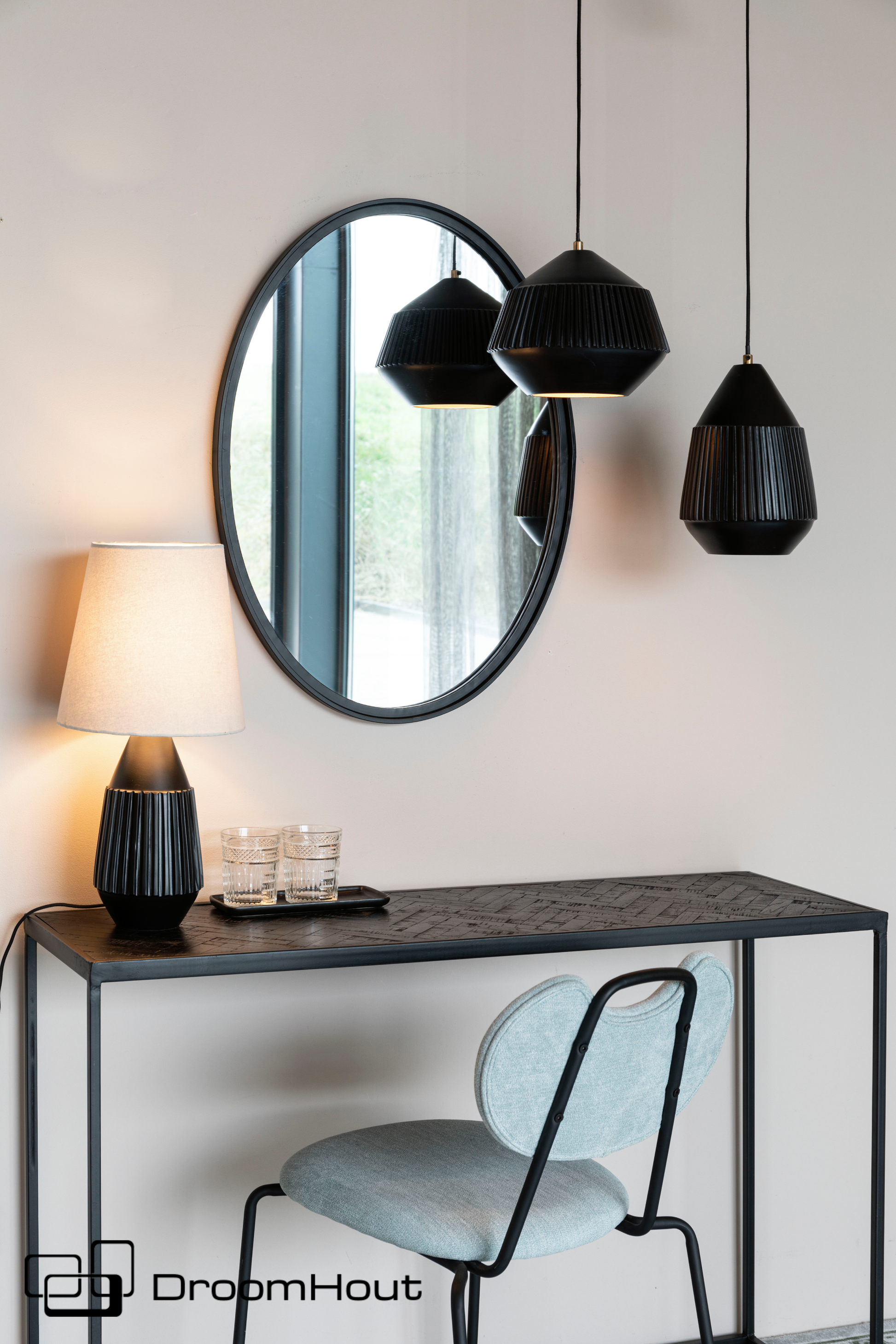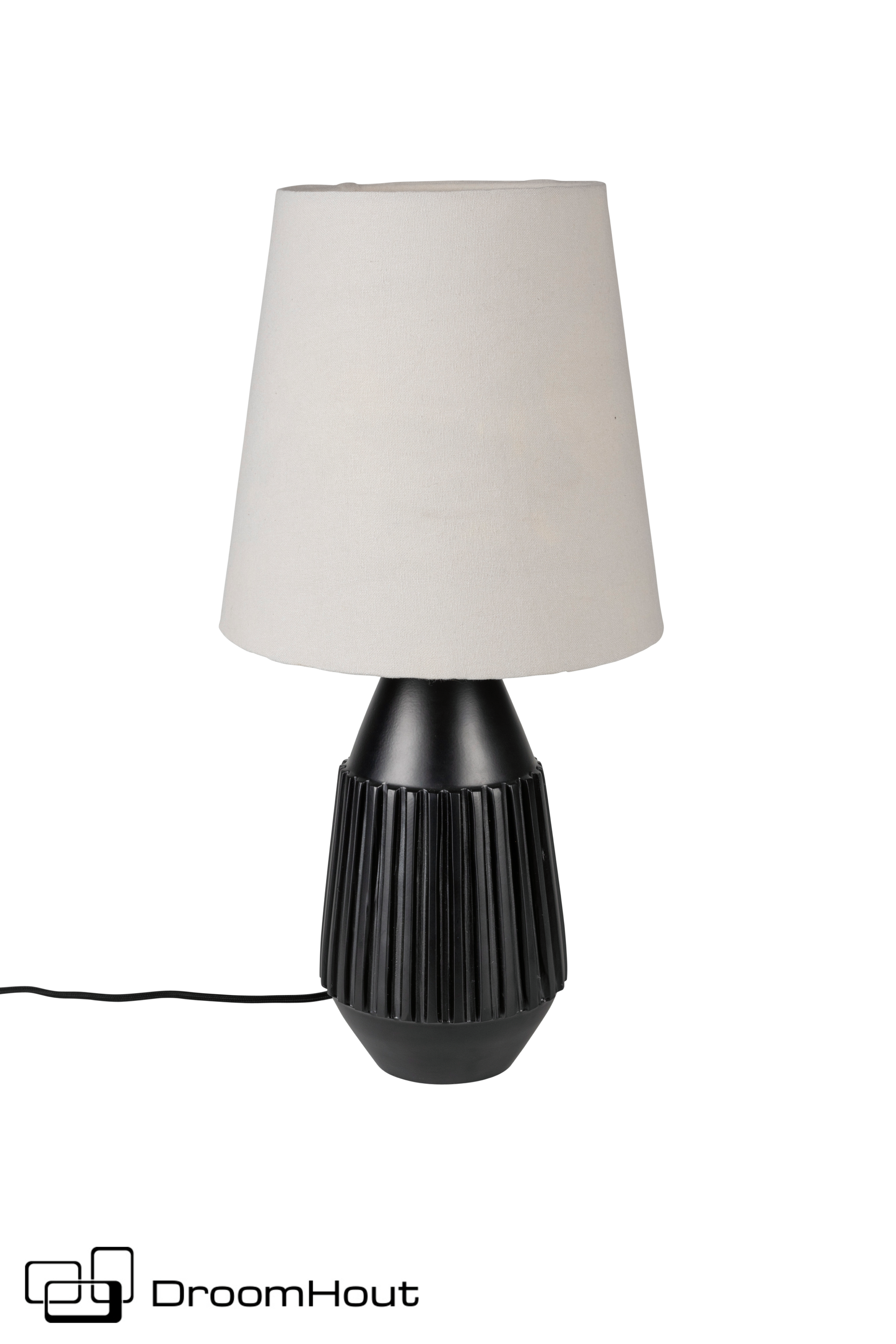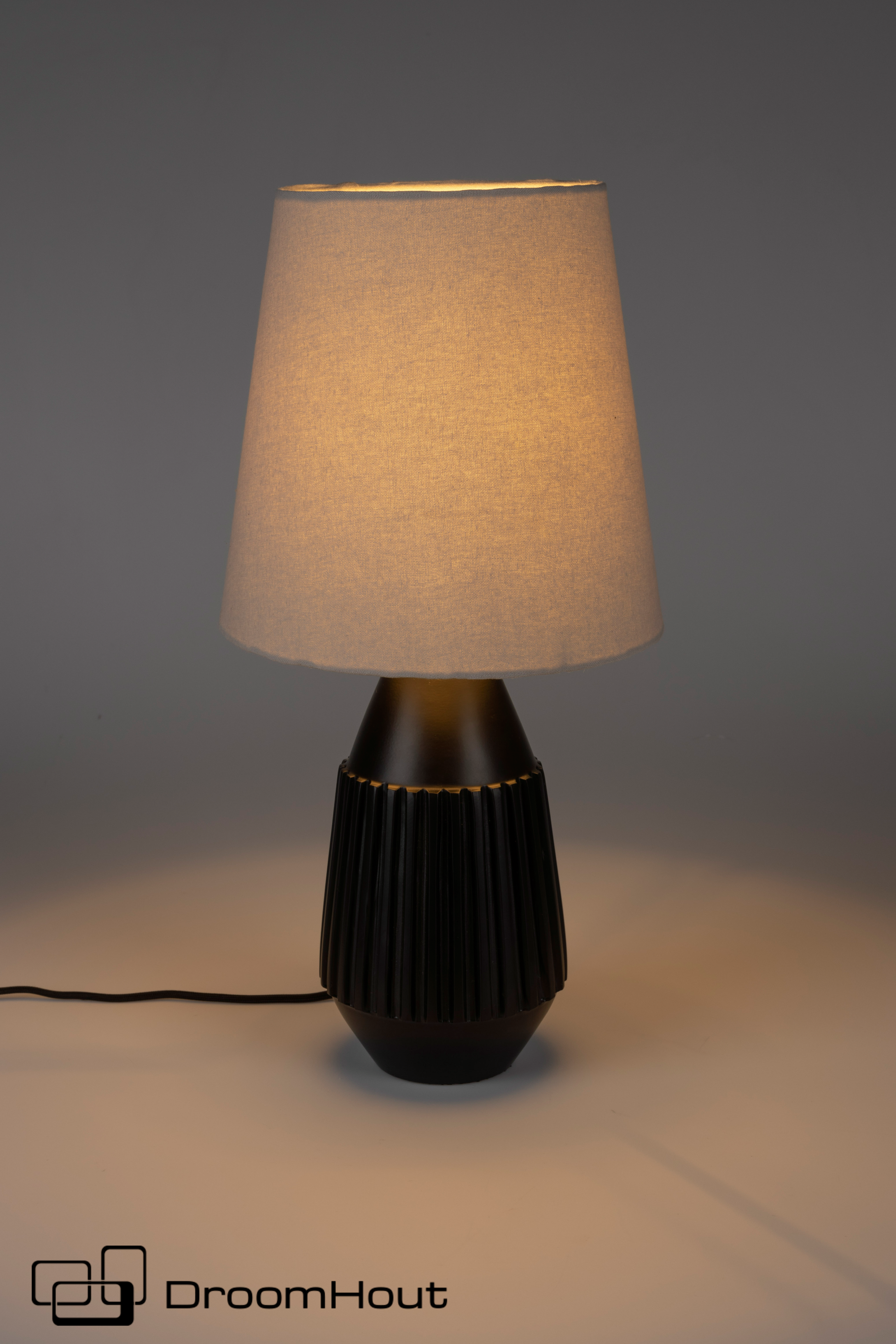 Wij laten je kennis maken met een gloednieuw item uit onze DREAUM-collectie: deze te gekke tafellamp, genaamd Aysa. Wij zijn verliefd! De lamp heeft een klassieke slash moderne uitstraling. En die combinatie maakt 'm ook zo leuk! De voet van de lamp heeft een mooi en uniek patroon. Retro, maar toch strak, modern en trendy. Een combinatie die weer helemaal hot is geworden! Wij vinden dat deze lamp, in combinatie met de leuke lampenkap gewoon een must-have in je interieur is. Zet de lamp op de kast, in de vensterbank, op de eettafel, op je bureau, of gebruik de lamp als nachtlamp naast het bed. Of als verlichting in je hal of entree, zo creëer je direct een sfeervolle binnenkomst voor familie of vrienden. De tafellamp is verkrijgbaar in 2 kleuren: zwart of sand. Welke kleur je ook kiest, je kunt vrijwel nooit fout gaan met deze mooie basiskleuren. De binnenkant van de hanglampen zijn goudkleurig en geven een warm en sfeervol lichteffect. De voet met organische vorm en strepen is gemaakt van aluminium. De lampenkap is gemaakt van katoen. Bij de lamp zit een zwarte, stoffen kabel. De afmetingen zijn: 25x25x52 cm (LxBxH). Goed nieuws voor je als je de lamp graag boven de tafel wilt hangen: Aysa is niet alleen op staanders te verkrijgen, maar ook als hanglamp!