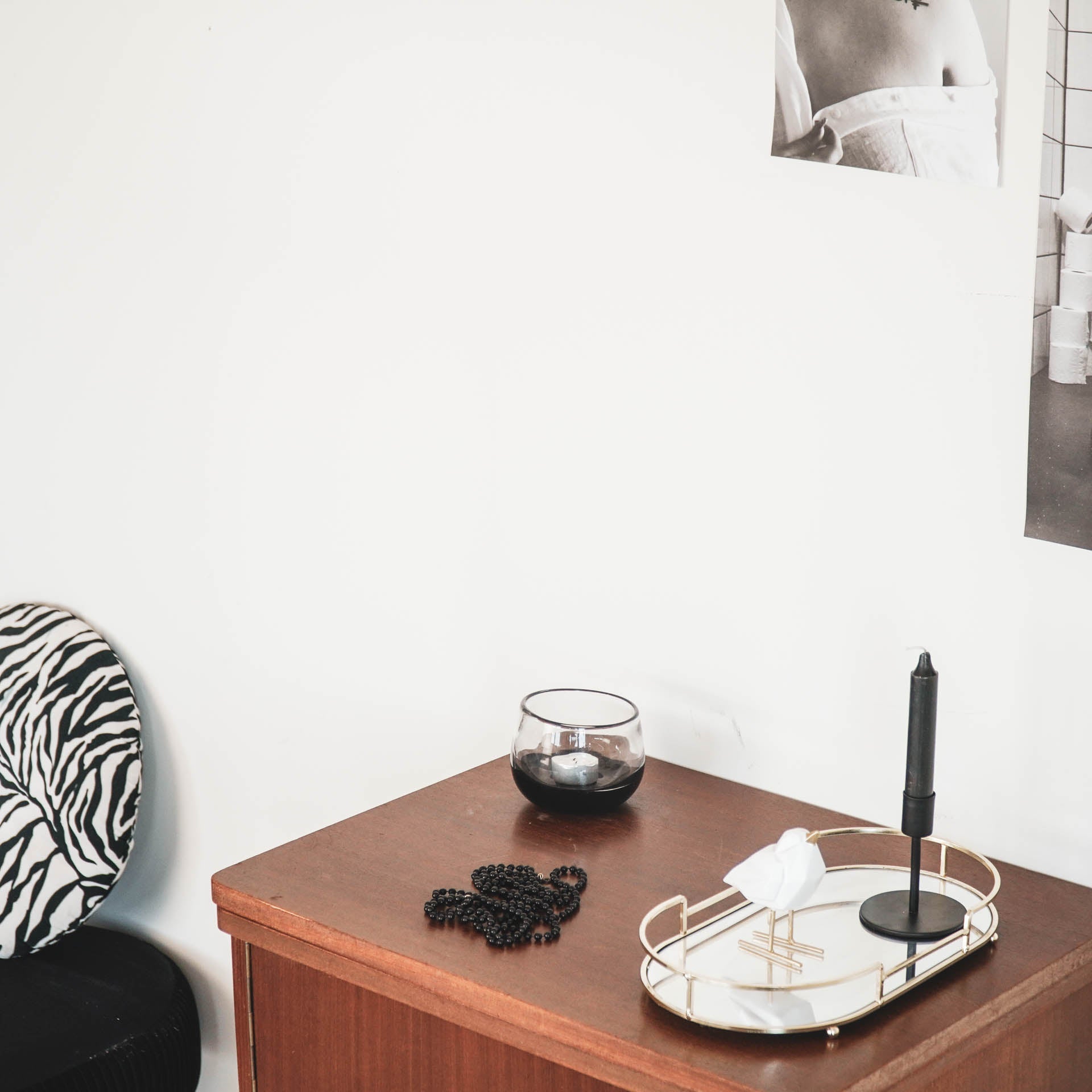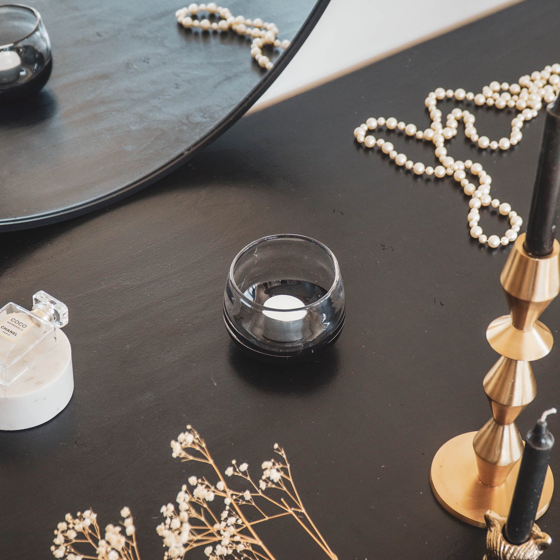 LIGHTEN UP! Deze ronde glazen theelichthouder met zwarte dipdye bodem is de perfecte match met onze vazen in dezelfde dipdye.