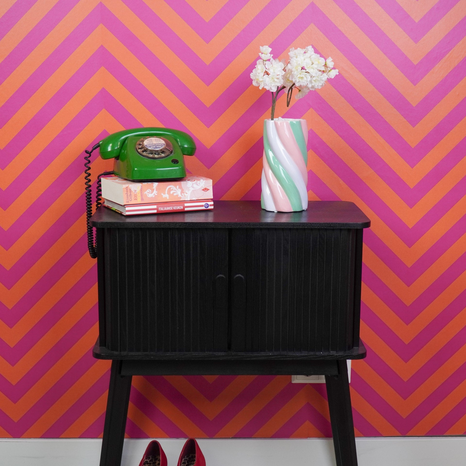 Maak het geheel extra vrolijk door de vaas te vullen met bloemen in pastelkleuren, zoals pioenrozen, tulpen of ranonkels. Combineer de vaas met andere kleurrijke accessoires of zet hem op een dienblad met (nep)snoepjes voor een onweerstaanbaar zoet hoekje. Zo wordt deze kabel spek vaas hét stralende middelpunt van je kamer!