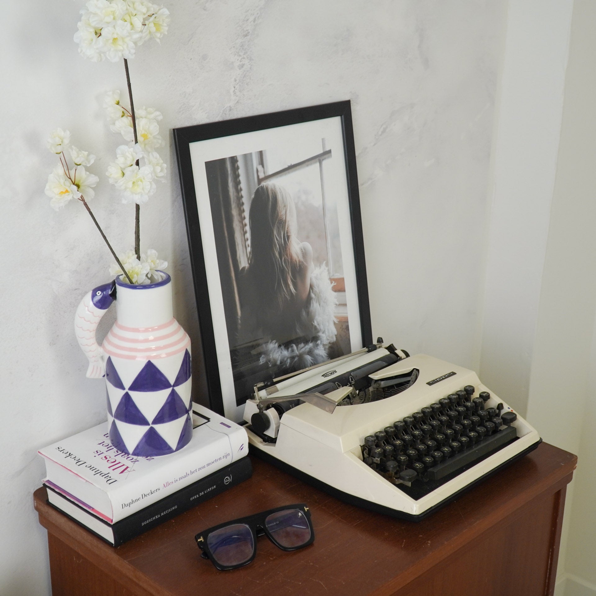 Vul de bloemenvaas met bloemen in felle kleuren zoals geel, roze of blauw voor een extra zomerse uitstraling. Combineer de vaas met andere maritieme accessoires, zoals schelpen, zeesterren of kleine vaasjes in frisse tinten, voor een sfeervol strandhoekje in huis. Zet de kan op een dienblad met wat zand of steentjes voor een ultieme beach vibe!