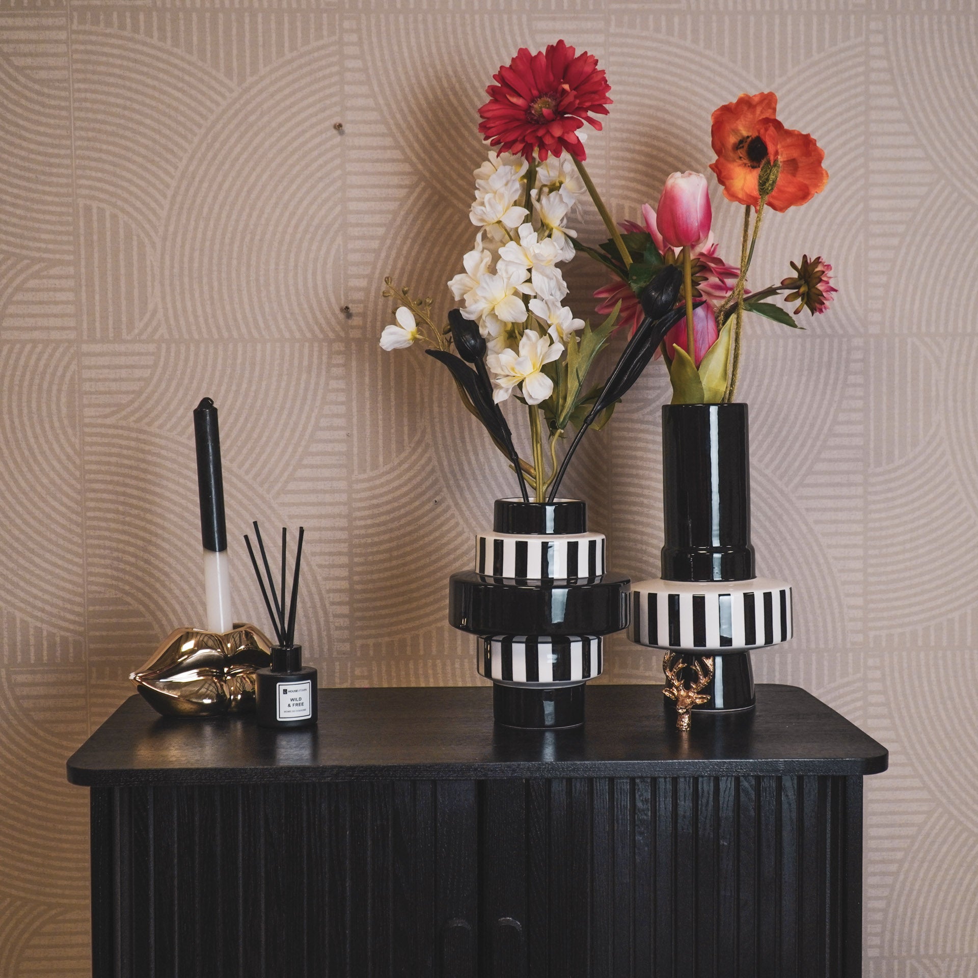 VASE IT! Vazen heb je nooit genoeg en zeker niet in deze mooie vorm. Deze gestreepte zwart wit vaas is in de art deco stijl en geeft jouw interieur een Frans tintje!! Zoek je een vrolijke vaas met een bijzondere vorm, zoek niet verder!