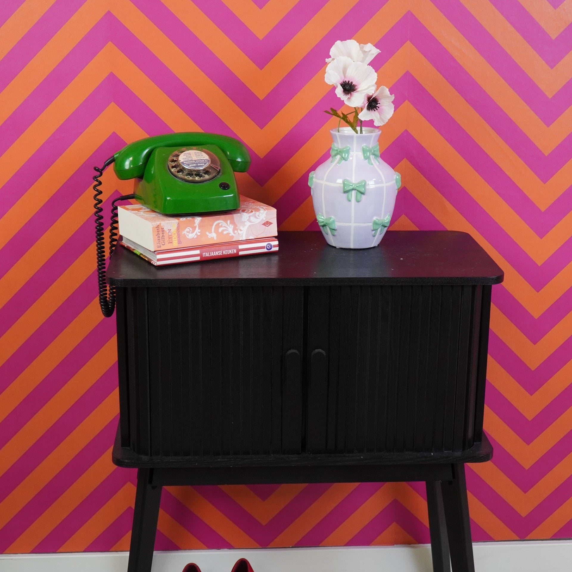 GESTRIKT! Voeg een speels en kleurrijk accent toe aan je interieur met deze charmante bolle buik vaas van dolomiet. Met zijn ronde, volle vorm en levendige kleuren brengt deze vaas direct vrolijkheid in elke ruimte. De subtiele strikjes en fijne lijntjes rondom geven het design een uniek en handgemaakt karakter, waardoor het een echte blikvanger is op je tafel, vensterbank of dressoir.