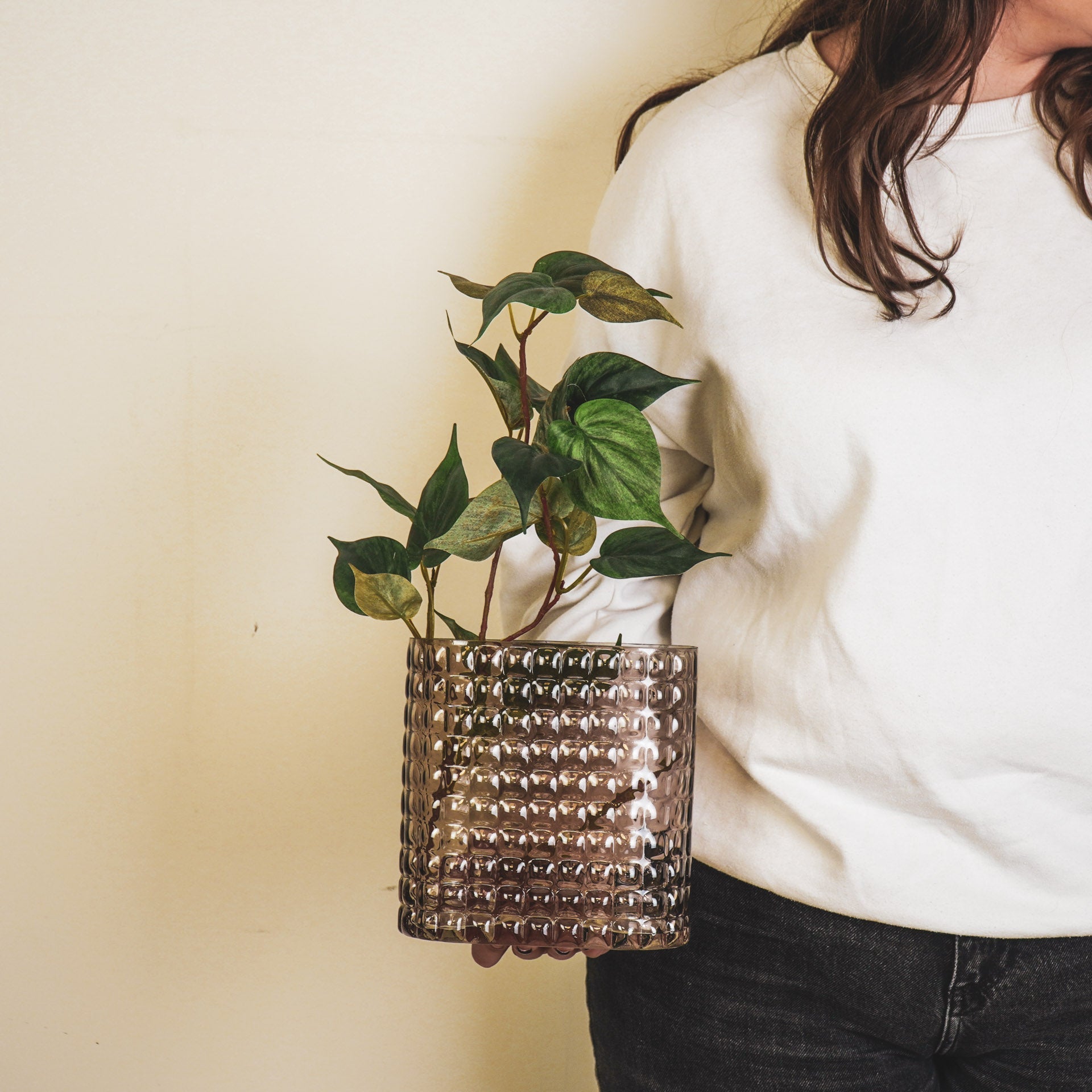 - Gemaakt van gebobbeld glas in een bruine kleur