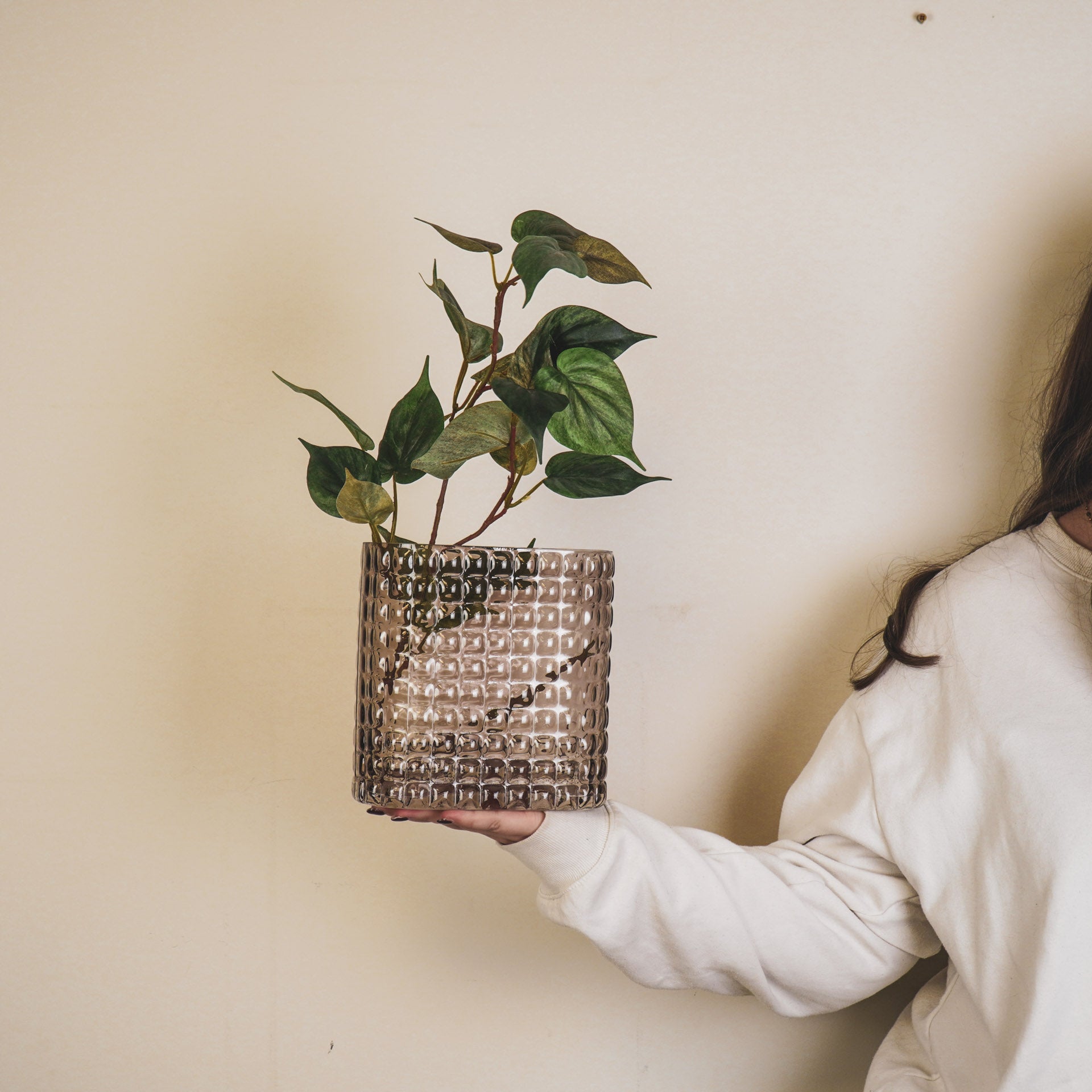VASE TIME- Op zoek naar een unieke vaas om je interieur te verrijken? Deze prachtige bruine vaas van Housevitamin is gemaakt van hoogwaardig gebobbeld glas en is maar liefst 17,5 cm hoog. De ovale vorm en het speelse design maken deze vaas een echte eyecatcher in huis. Stijlvol en tijdloos, deze vaas past perfect in elk interieur. Laat je creativiteit de vrije loop en laat deze vaas stralen in jouw huis.
