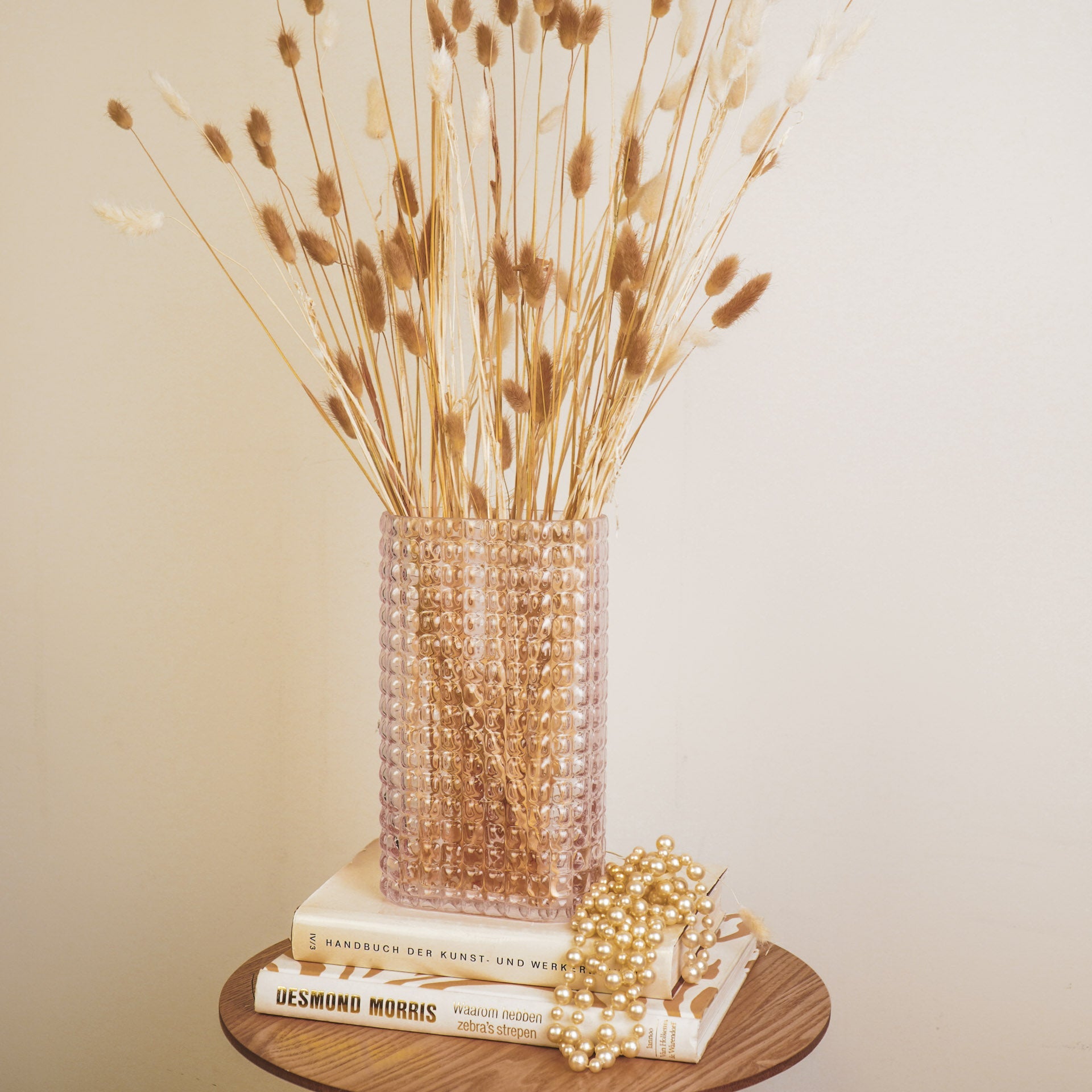 VASE TIME- Op zoek naar een unieke vaas om je interieur te verrijken? Deze prachtige roze vaas van Housevitamin is gemaakt van hoogwaardig gebobbeld glas en is maar liefst 25 cm hoog. De ovale vorm en het speelse design maken deze vaas een echte eyecatcher in huis. Stijlvol en tijdloos, deze vaas past perfect in elk interieur. Laat je creativiteit de vrije loop en laat deze vaas stralen in jouw huis.