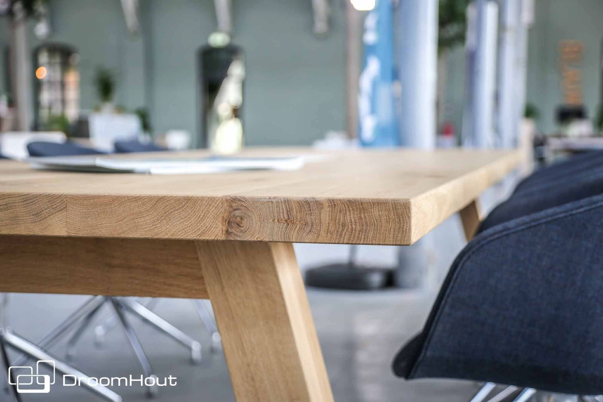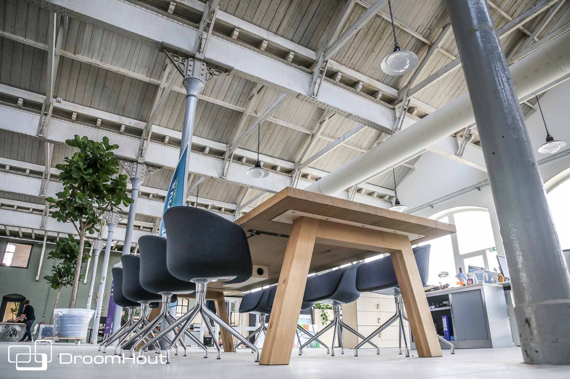 Wat een kanjer van een vergadertafel is de DroomHout Kopenhagen. Vergadertafel Kopenhagen meet 250 x 100 cm, 300 x 100 cm of 350 x 100 cm. Geschikt voor maar liefst 8, 10 of 12 zitplaatsen, afhankelijk van stoelbreedte en gewenste 'personal space'. Deze vergadertafel maakt een statement in iedere zakelijke ruimte. De afwerking is met een onverwoestbare matte blanke lak, zo blijft deze vergadertafel heel lang mooi zonder vlekken. Dit massief eiken blad is wel 40 mm dik. Dit geeft de mooie stoere uitstraling die de Kopenhagen zo eigen is.