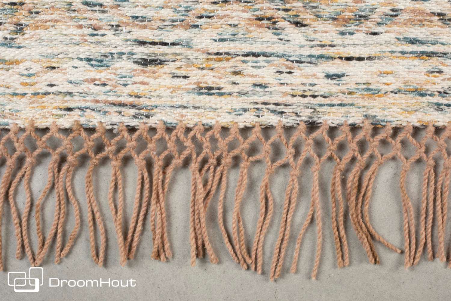 Houd jij ook van natuur in je interieur? Dan pas vloerkleed Max perfect bij jou stijl. Dit tapijt is handgemaakt en heeft mooie subtiele natuurlijke tinten. De samenstelling is van 70% wol en 30% polyester. De achterzijde is afgewerkt met 100% katoen. Beide korte kanten hebben een mooi geknoopt uiteinde. Het is een speels raster welke uitloopt naar de franjes. Vloerkleed Max is leverbaar in de afmeting 170 x 240 cm. De hoogte van het vloerkleed is 10 mm. Handig zo'n dun vloerkleed, zo struikel je er niet over.