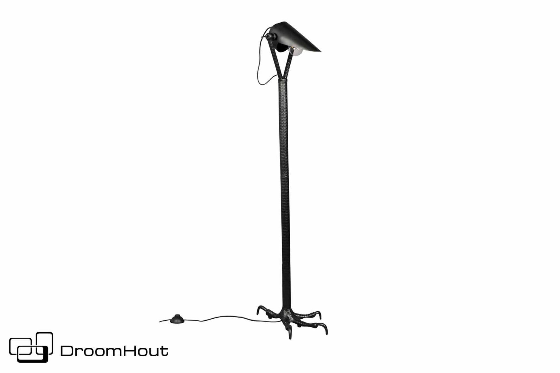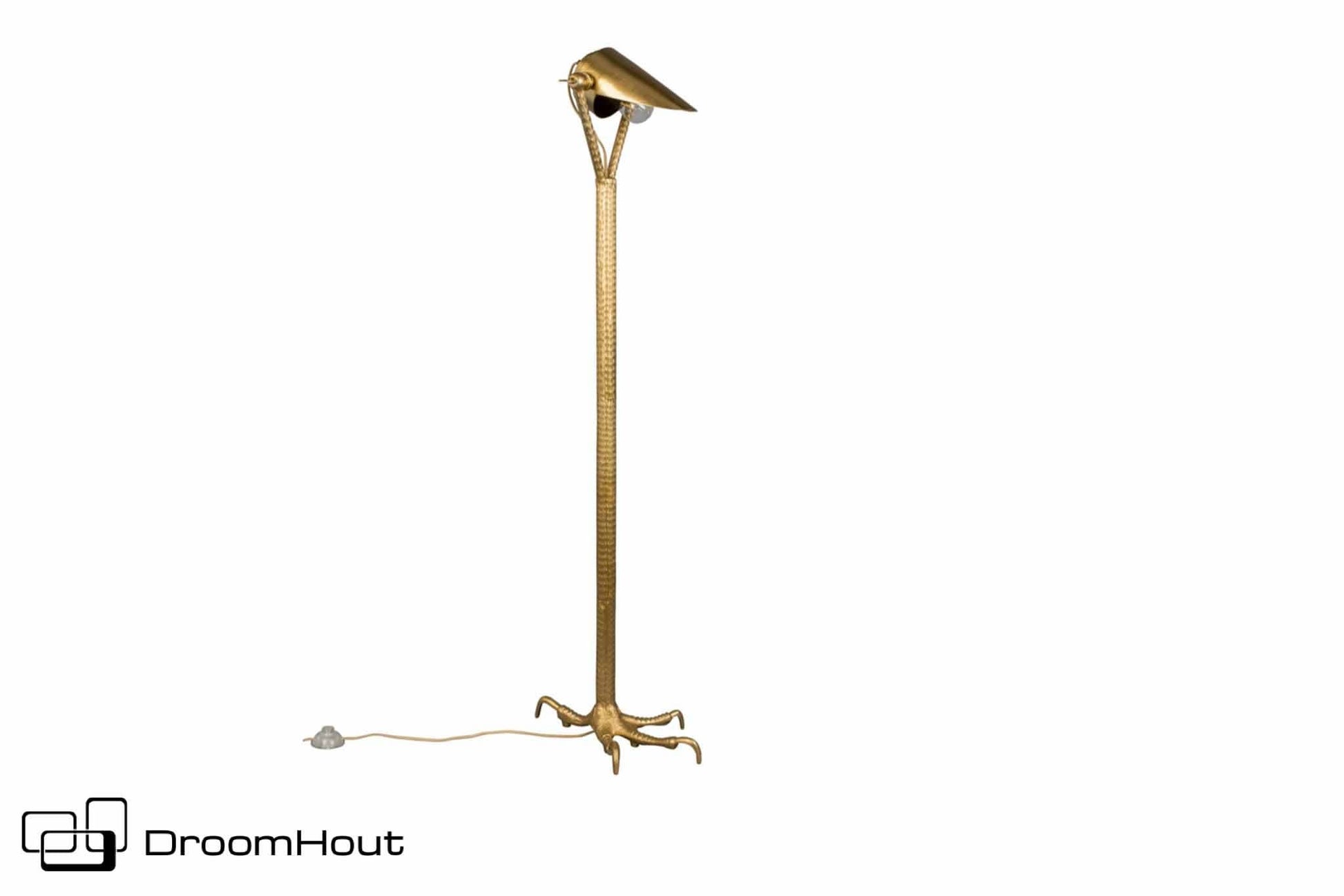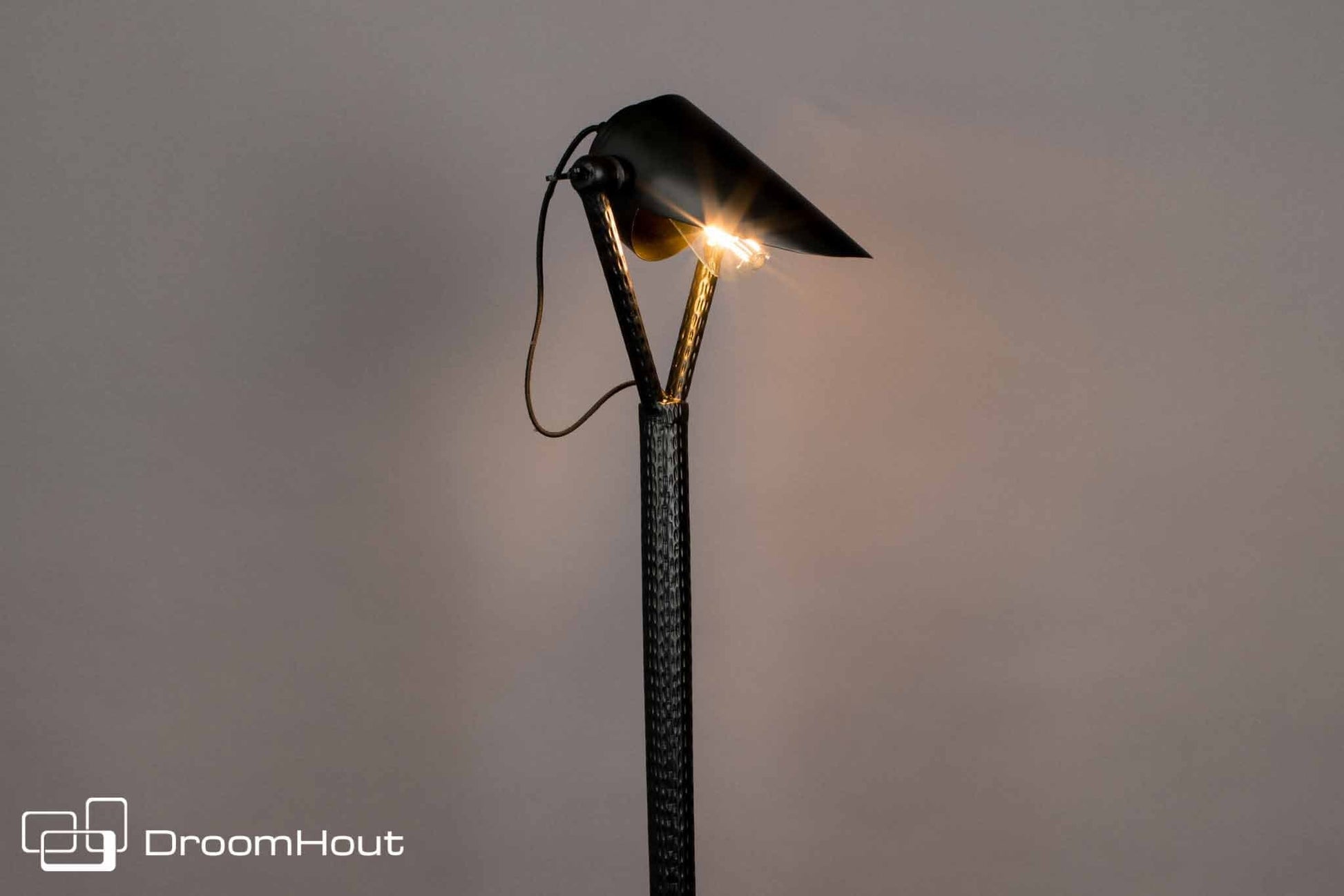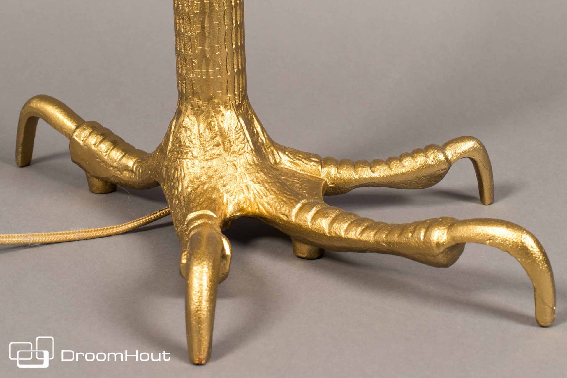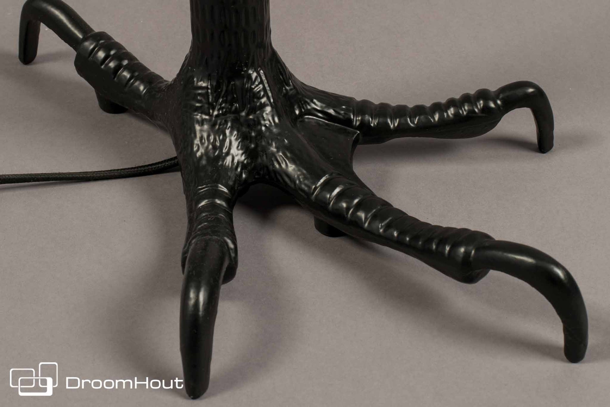 De Falcon staat erg stevig op de grond met z’n valkenpoot. Deze zware poot lijkt wel naar zijn prooi te grijpen. De snavel is terug te vinden in de kantelbare lampenkap. De lamp is gemaakt van 2 verschillende materialen, dit zijn de materialen aluminium en staal. De Falcon is verkrijgbaar in de dappere kleur black en elegante kleur brass.