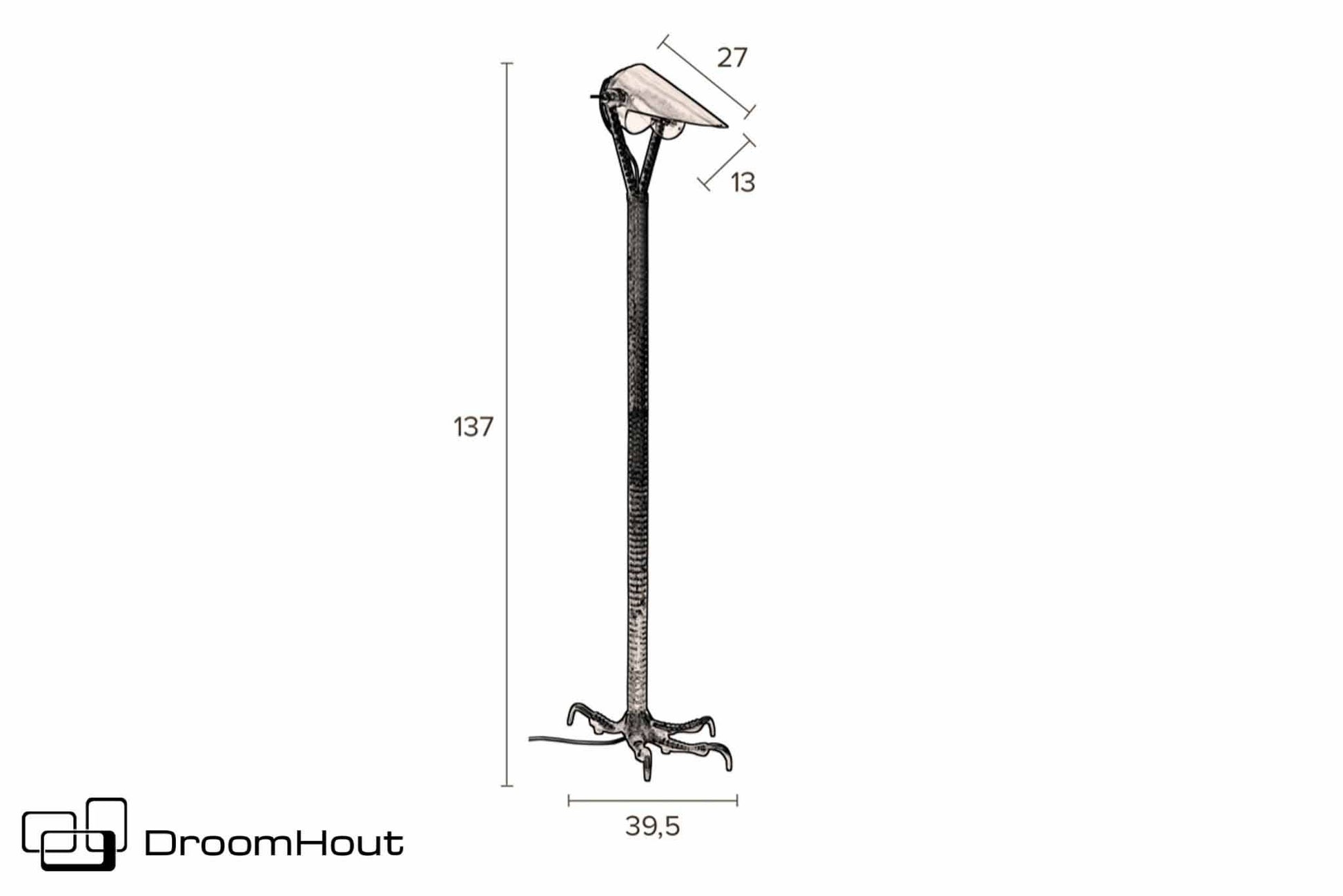 De lamp is voorzien van een 160 cm lang snoer, die dezelfde kleur heeft als de lamp. De lampenkap heeft een afmeting van 3 x 27 x 12 (B x D x H). De totale afmeting is 27 x 39,5 x 137 cm (B x D x H). Deze beestachtige serie bestaat niet alleen uit een vloerlamp. Er is ook nog een bureaulamp en zelfs een spiegel!Share