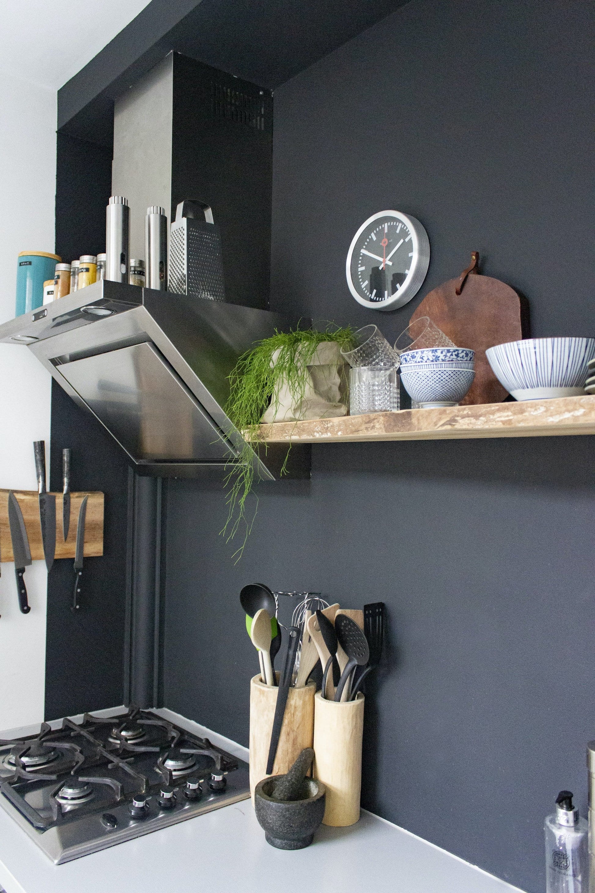 Wall clock/Table clock - Black - Aluminum - 'Station Stripe'